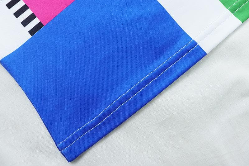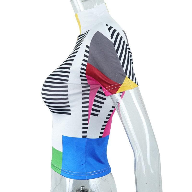 Plaid contrast print high neck short sleeve top