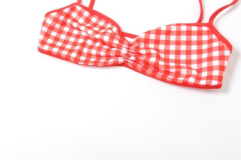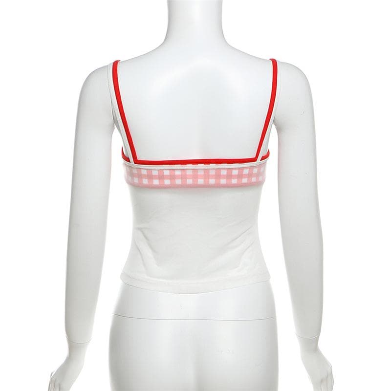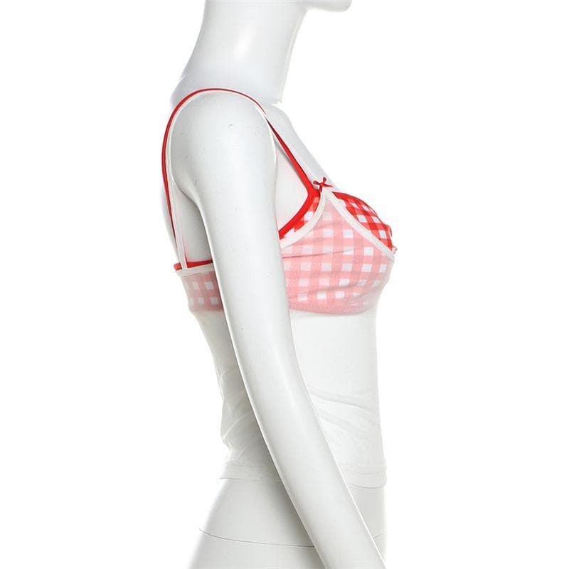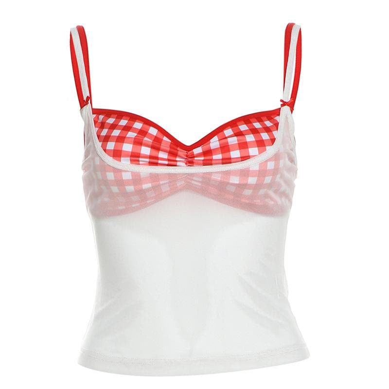 Plaid sweetheart neck ruched mesh 2 piece cami top