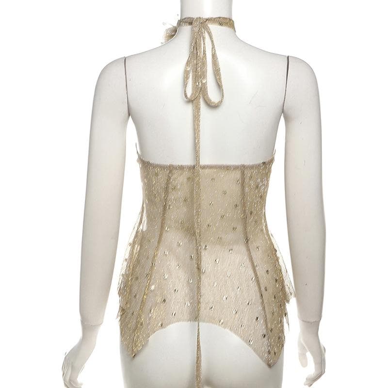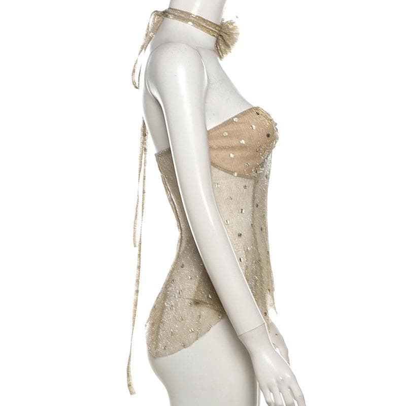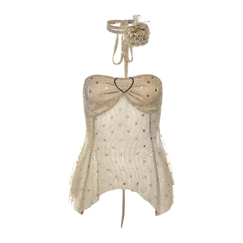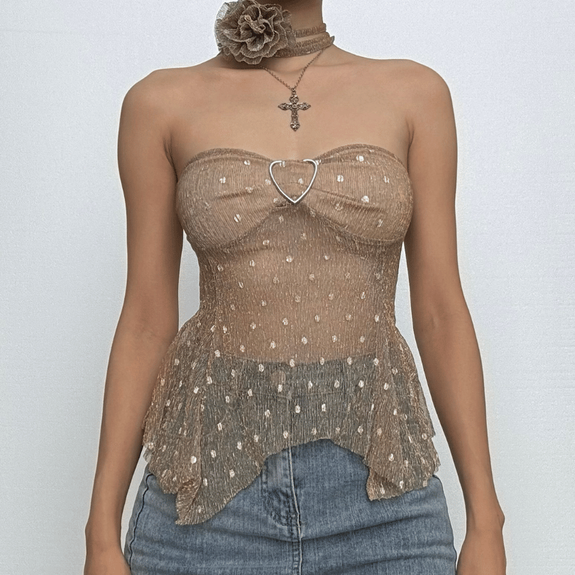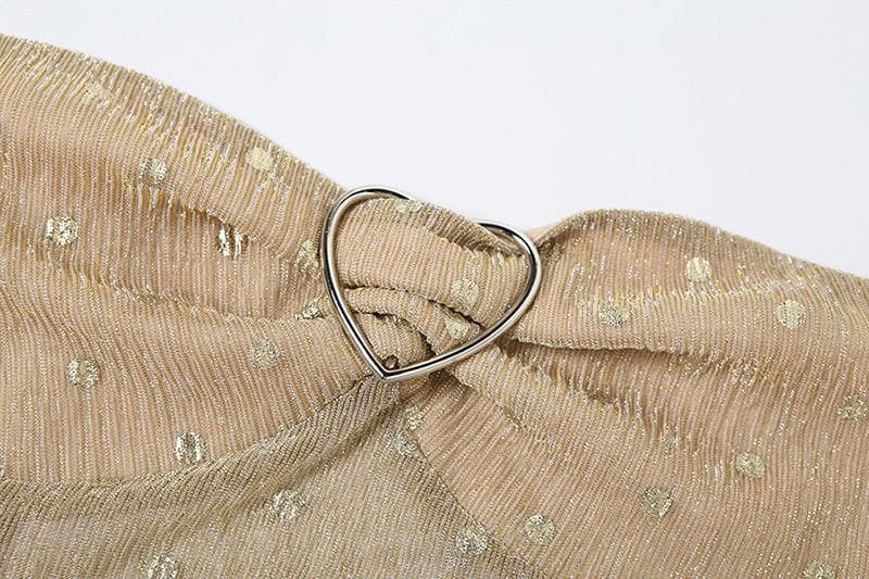Polka dot glitter buckle ruffle tube top