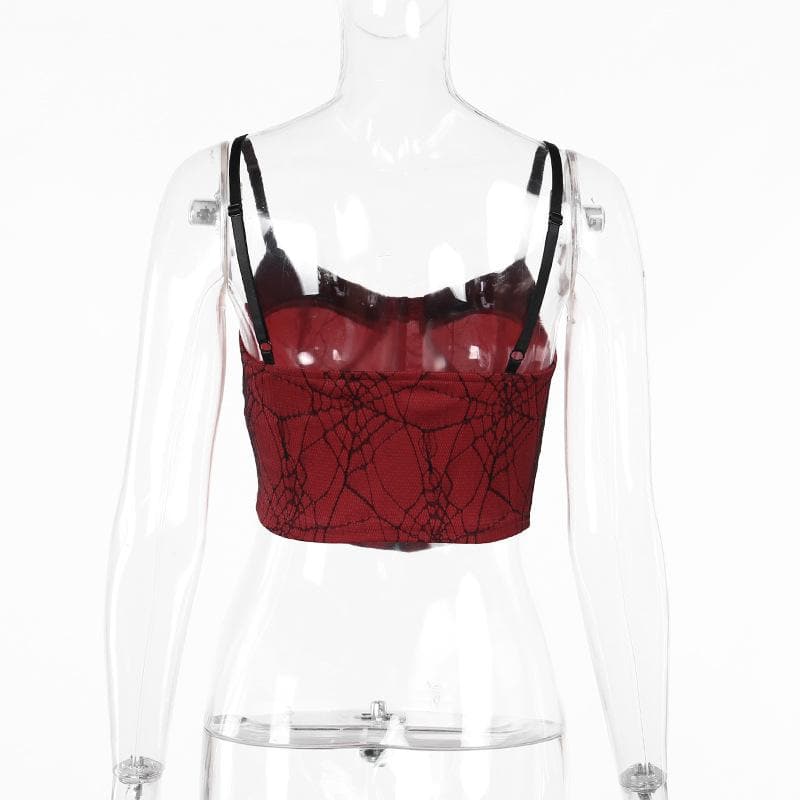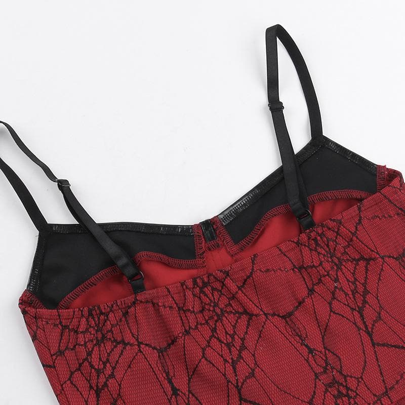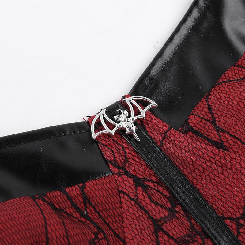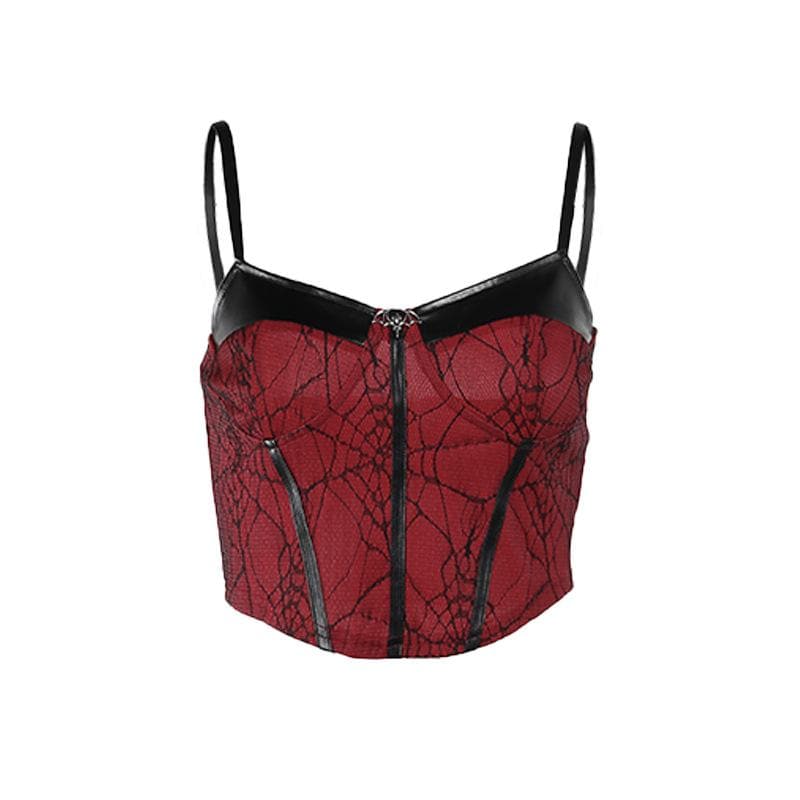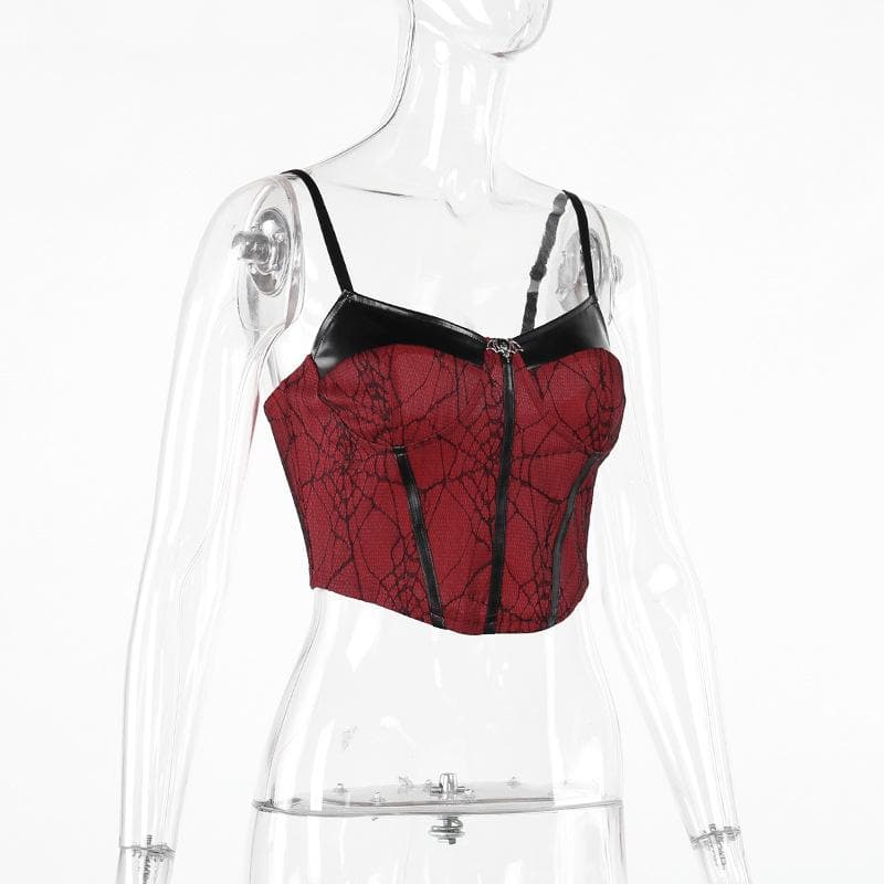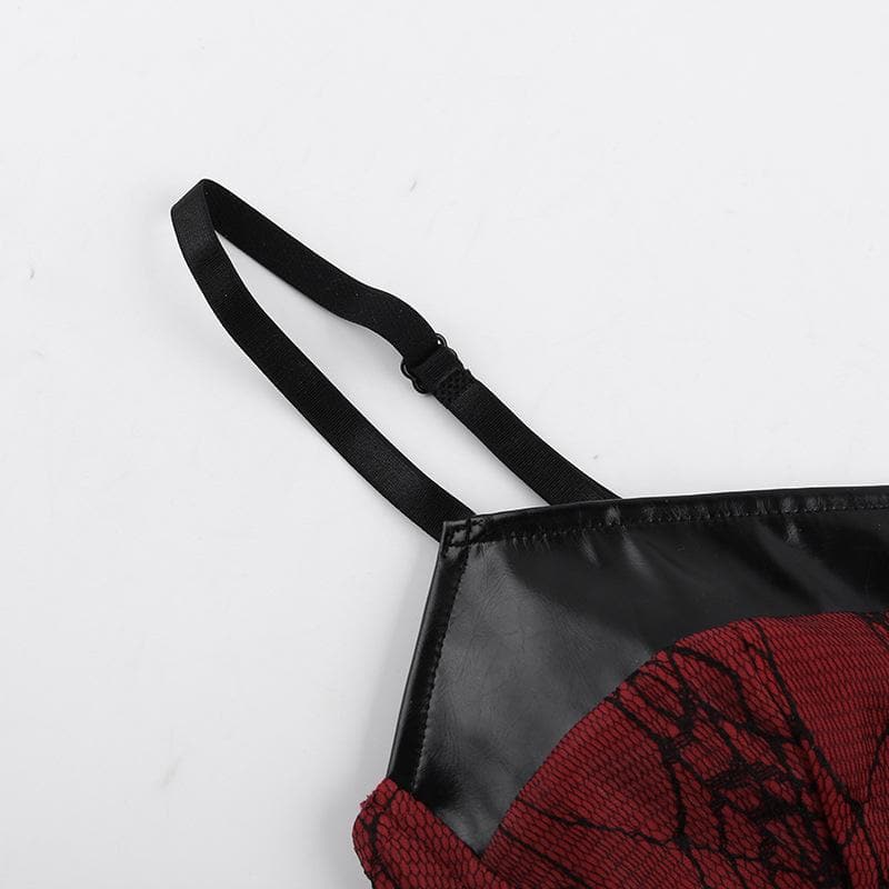 PU leather patchwork stitch lace bat applique cami top