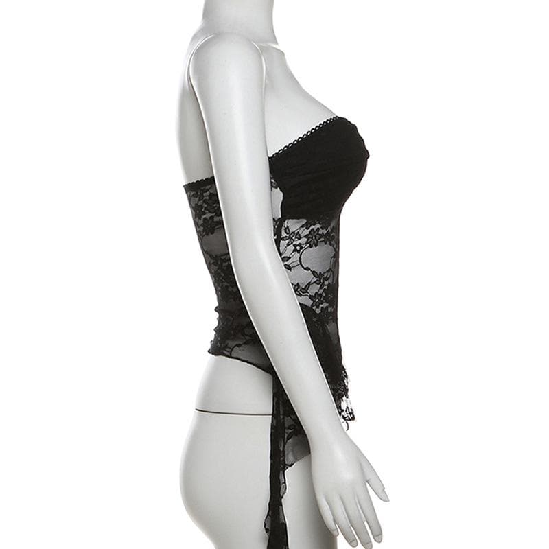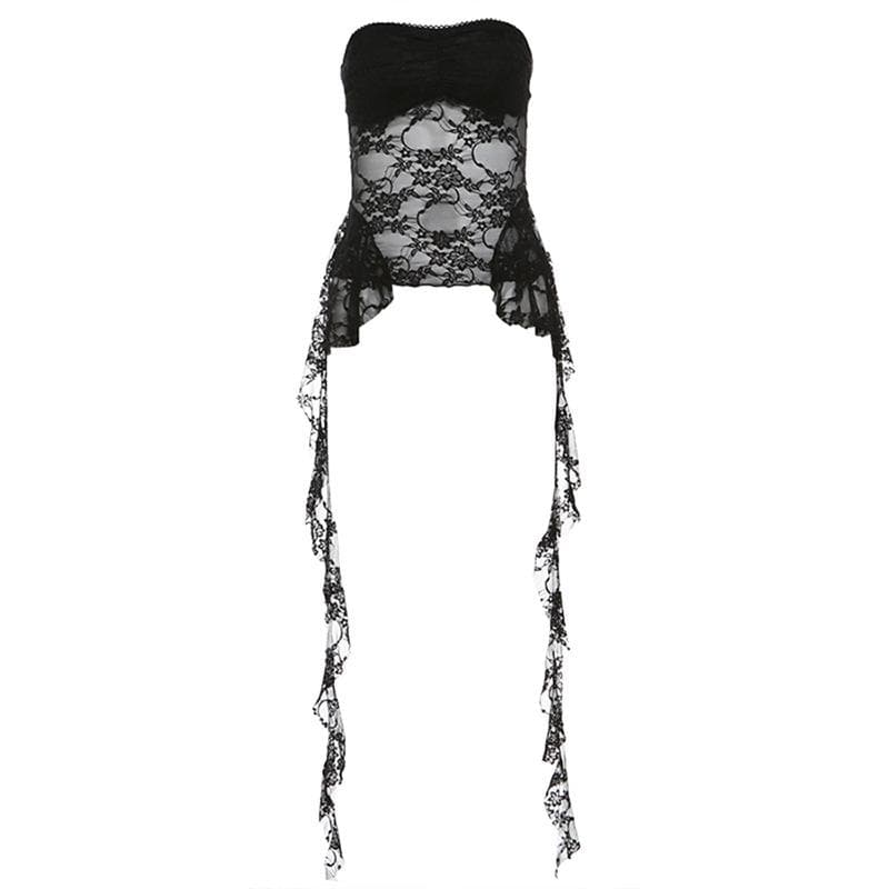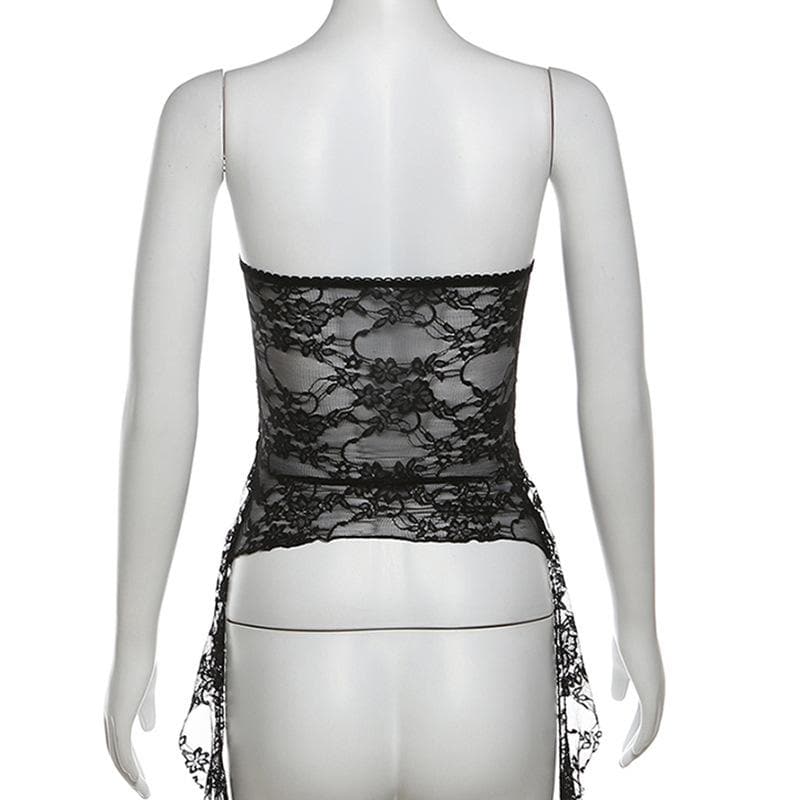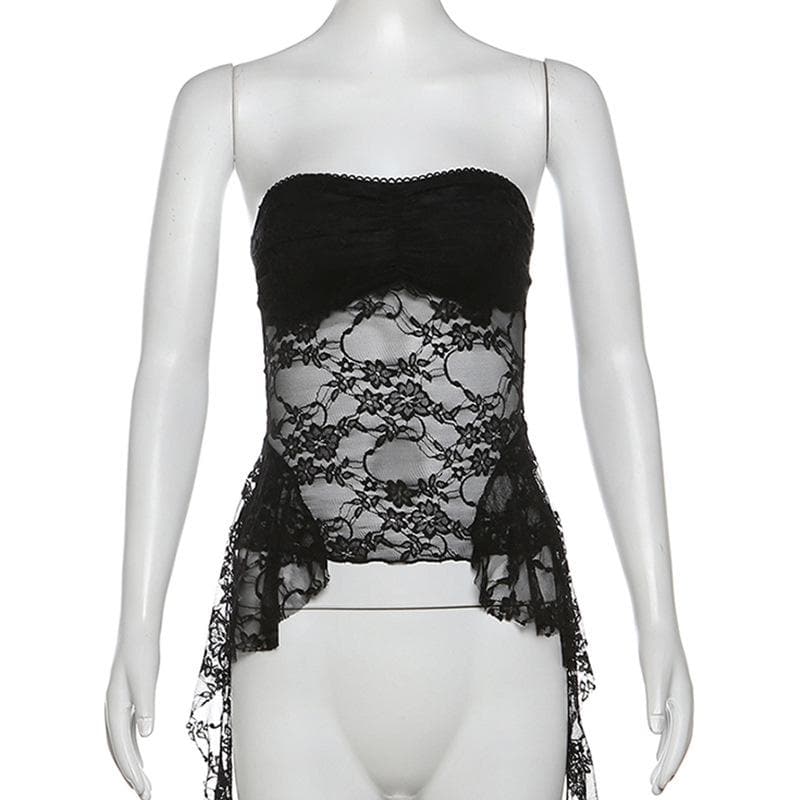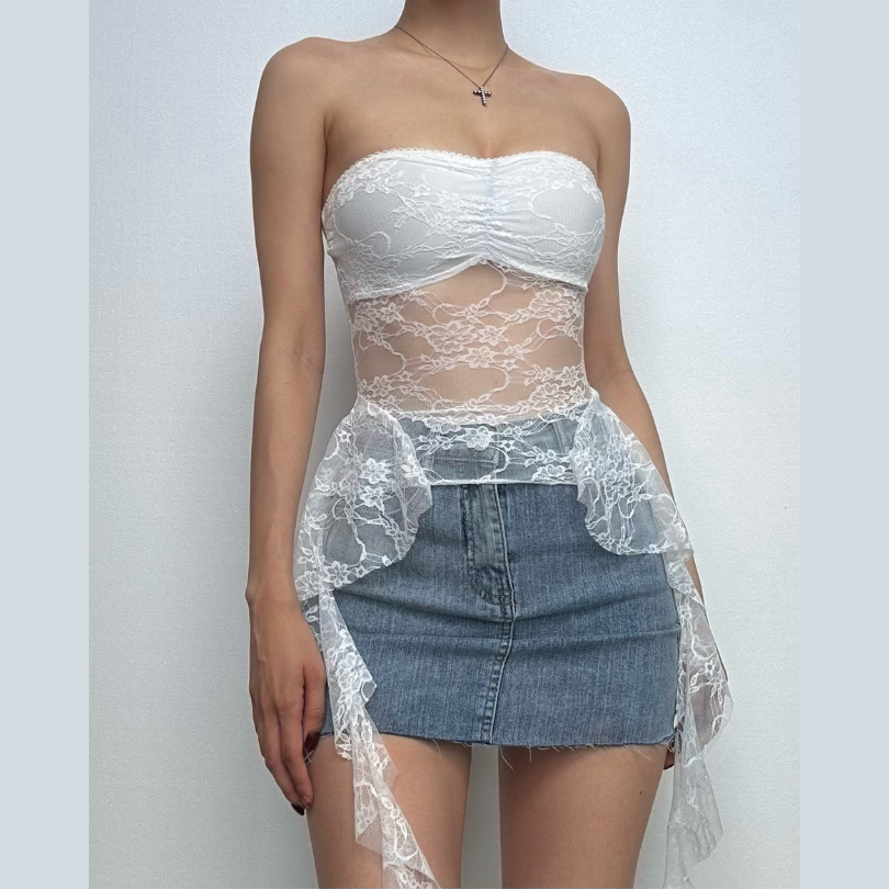 Ruffle lace backless solid tube top