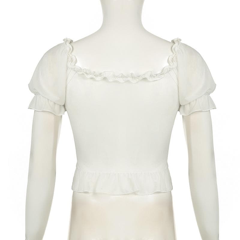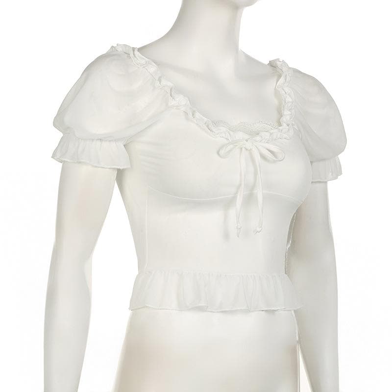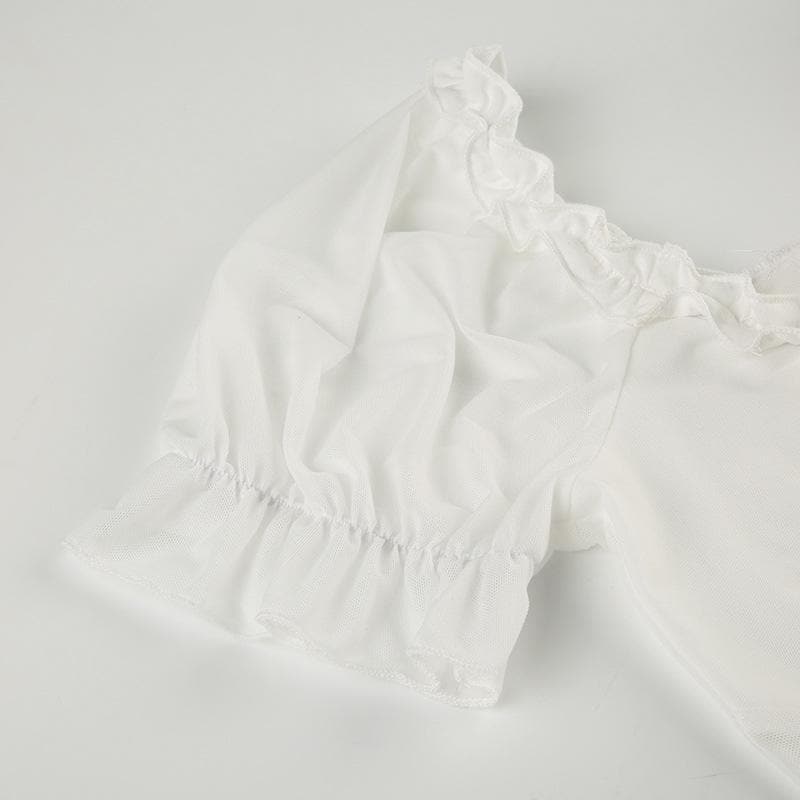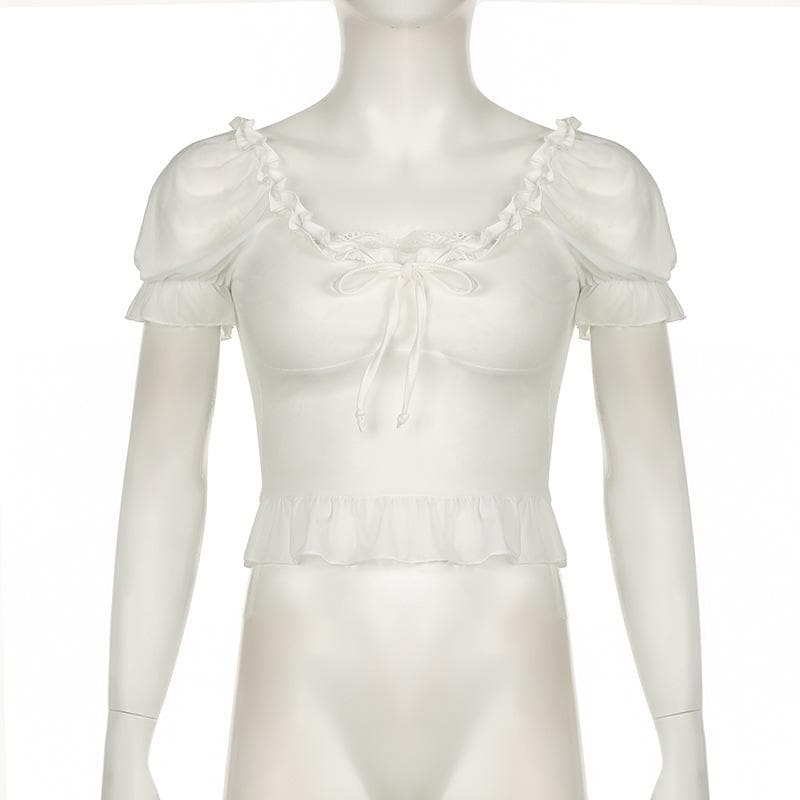 Short puff sleeve ruffle ruched knotted crop top