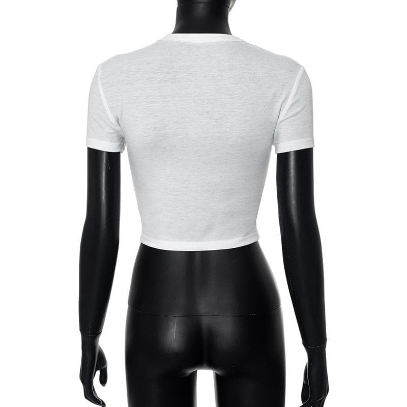 Short sleeve contrast letter print crop top
