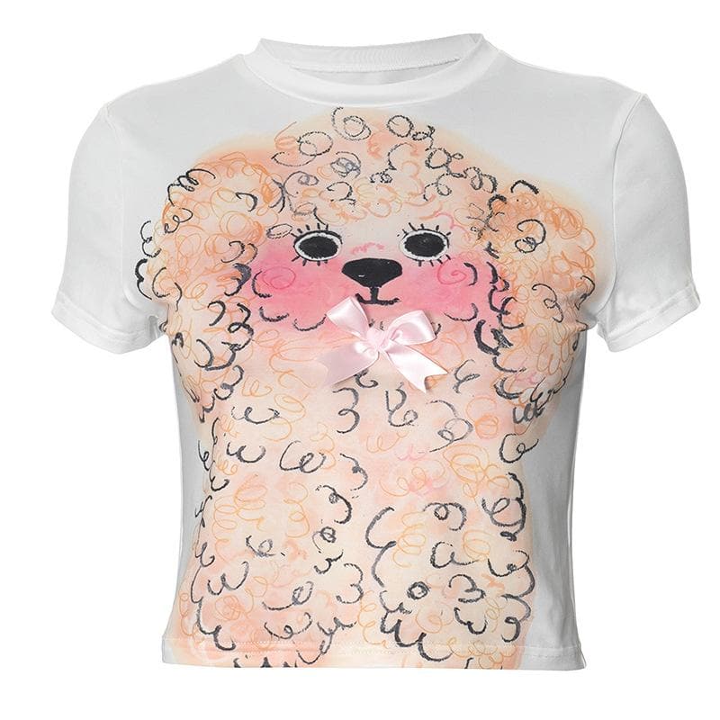 Short sleeve dog print bowknot crop top