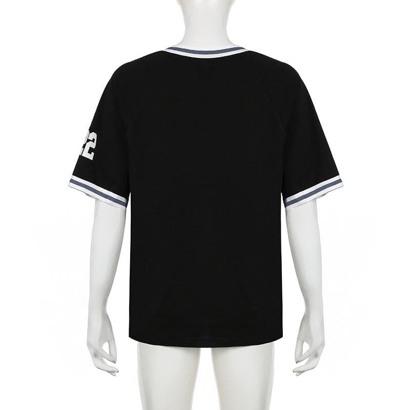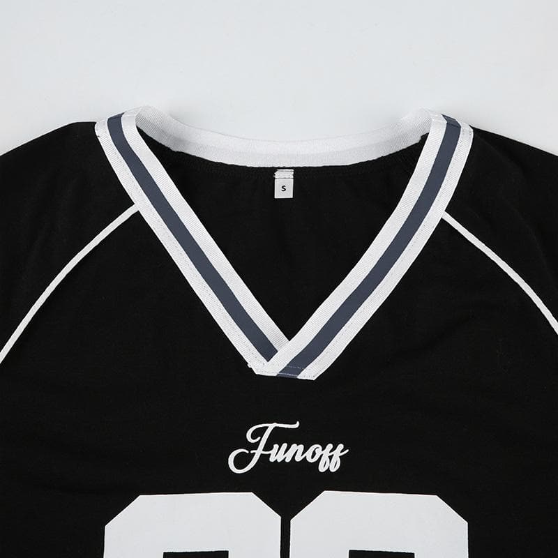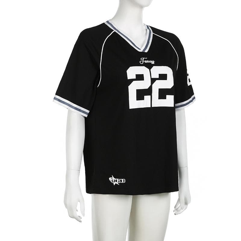 Short sleeve stitch “22” print v neck top
