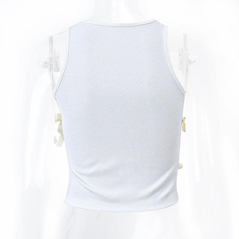 Sleeveless round neck lace up hollow out ribbed crop cut out top