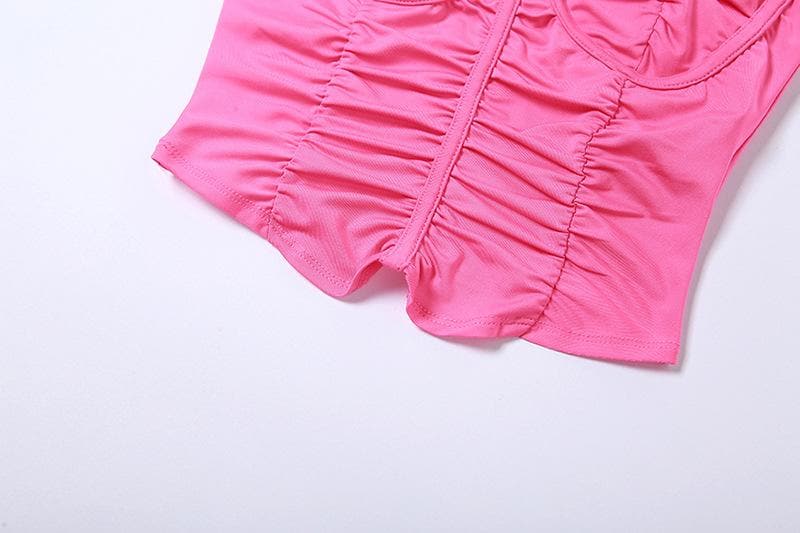 Sleeveless solid v neck ruched backless cami top