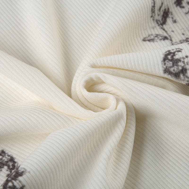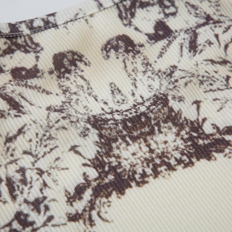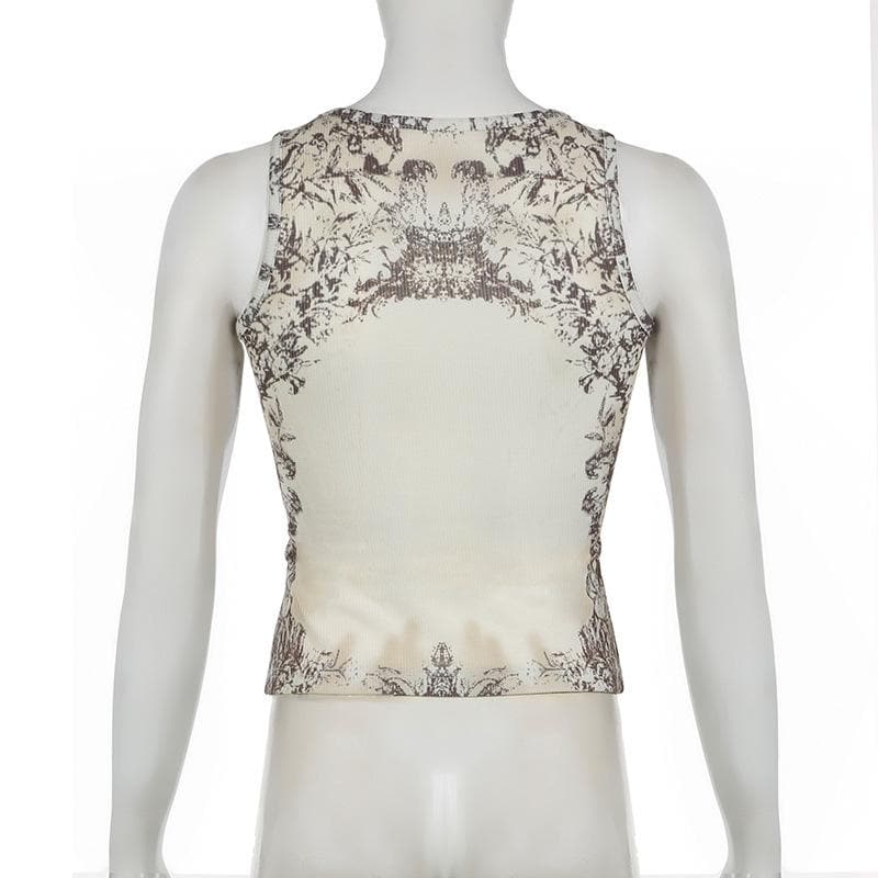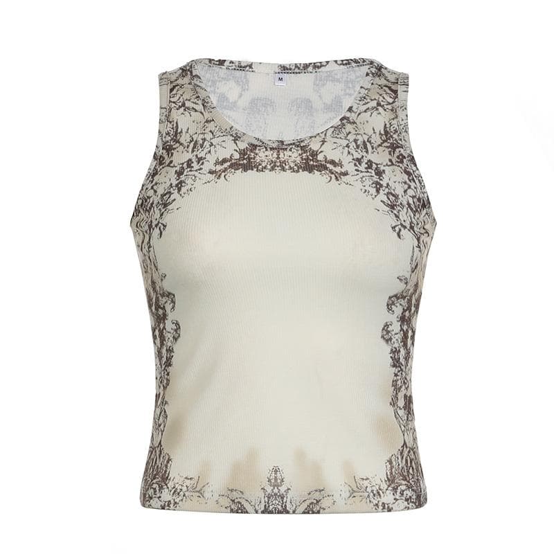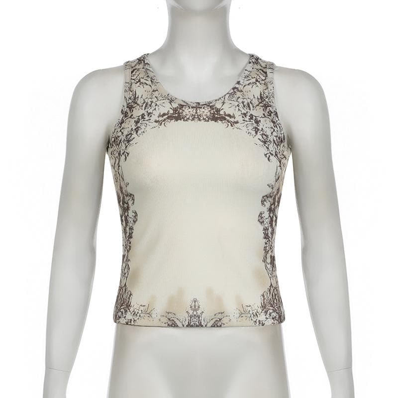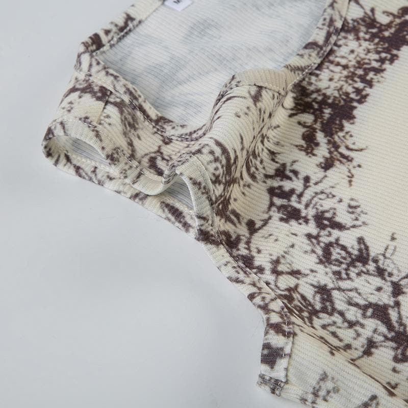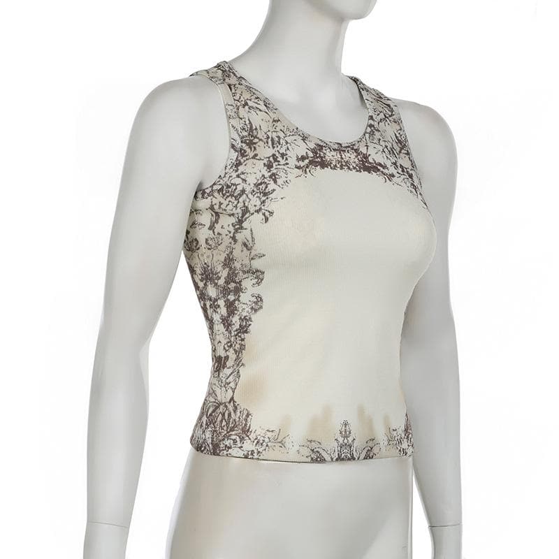 Sleeveless u neck print ribbed top