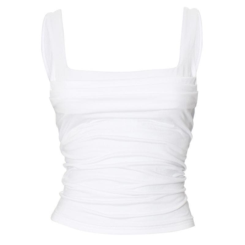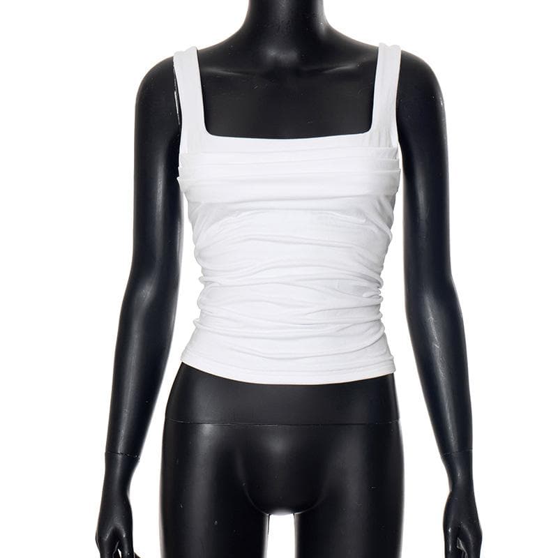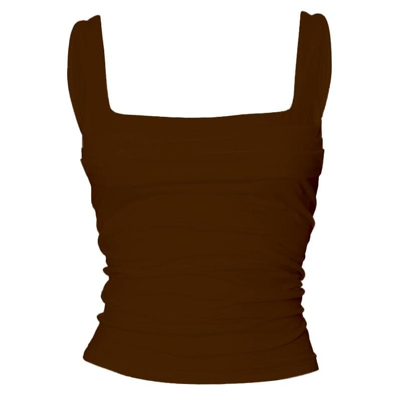 Square neck ruched backless solid top