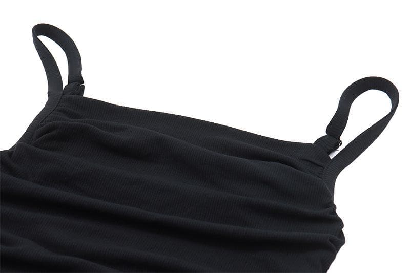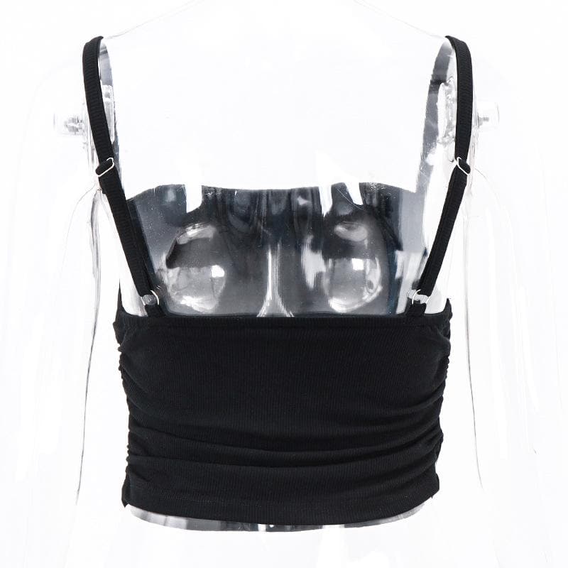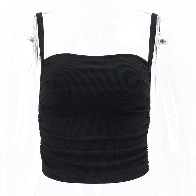 Square neck ruched solid ribbed backless cami crop top