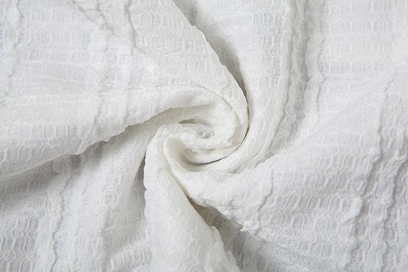 Textured solid long sleeve metal chain lace hem off shoulder top