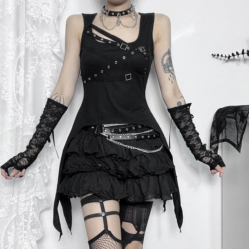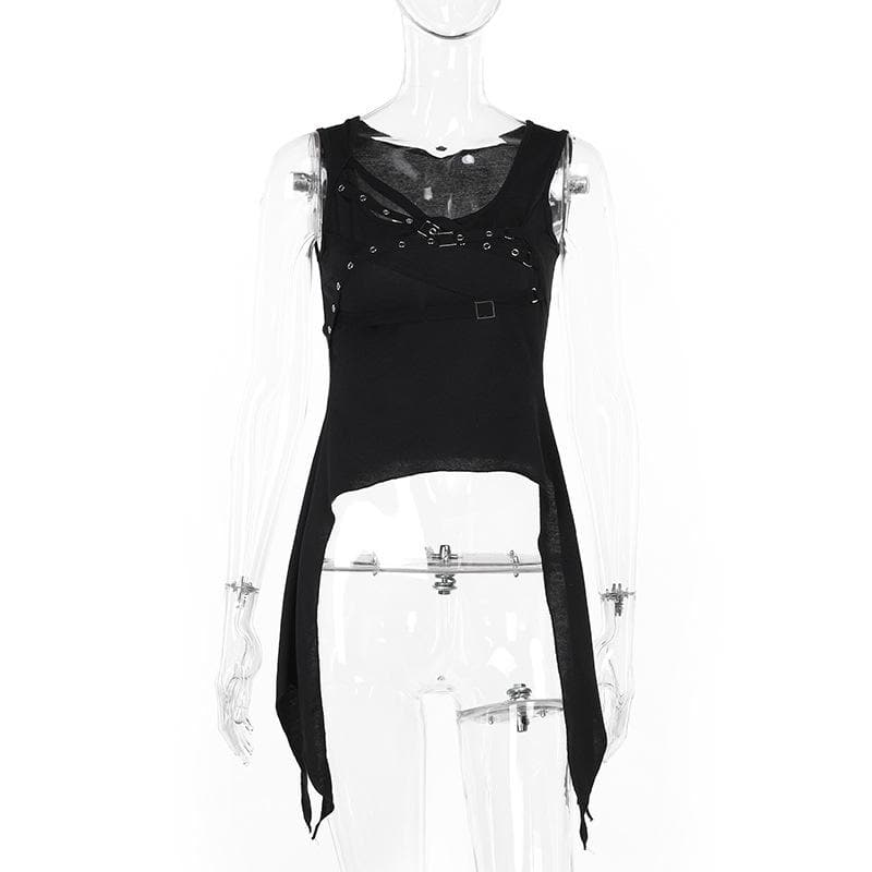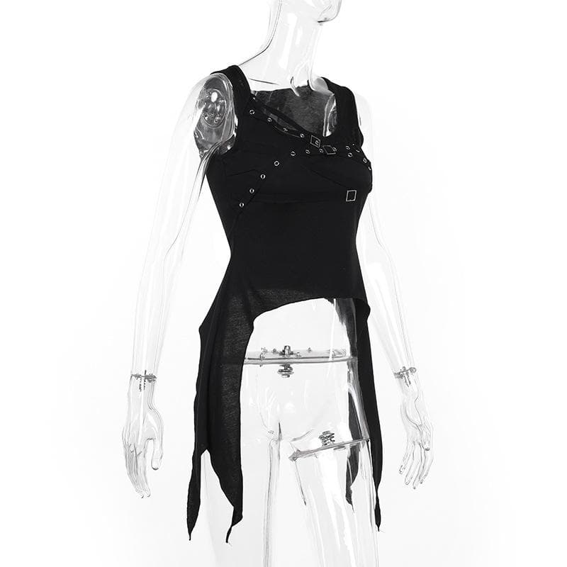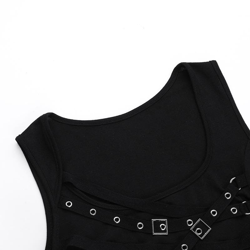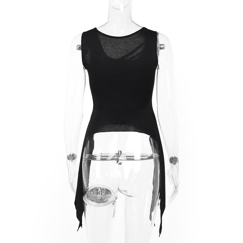 U neck cross front solid top