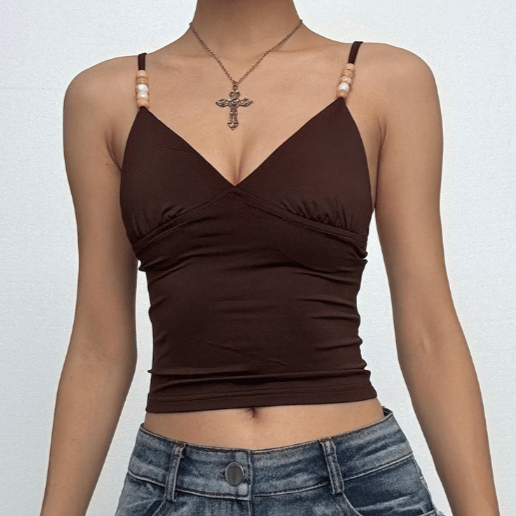 V neck backless beaded cami top