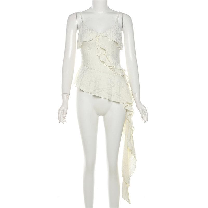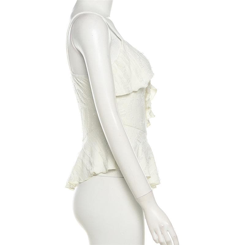V neck ruffle irregular backless solid cami top