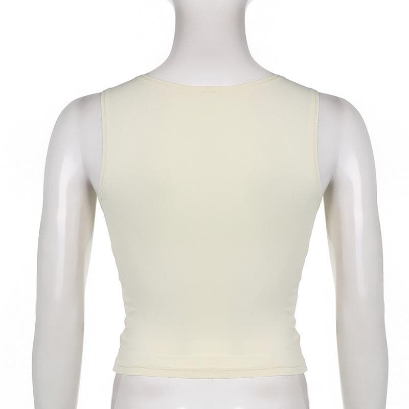 V neck sleeveless lace hem top