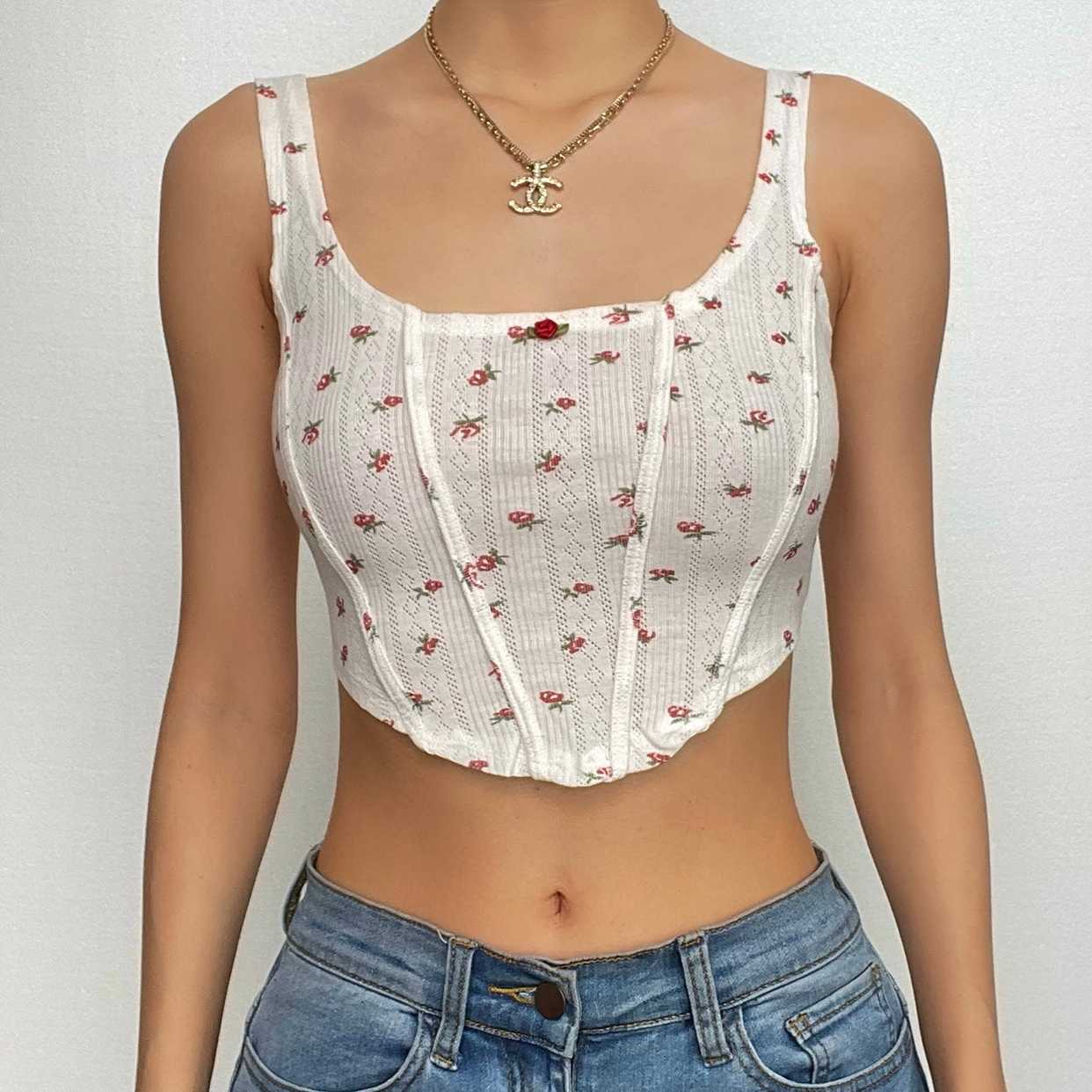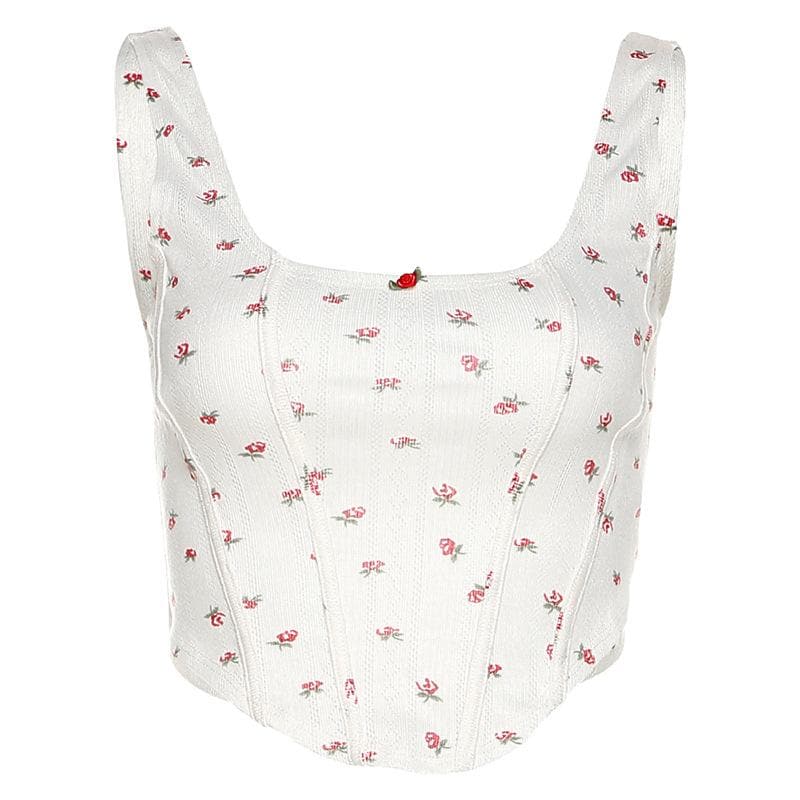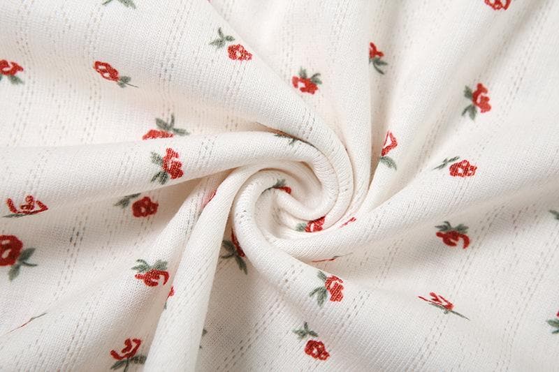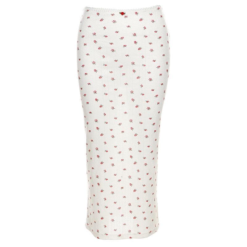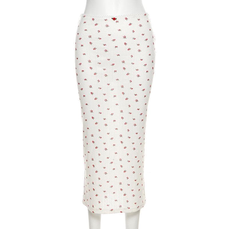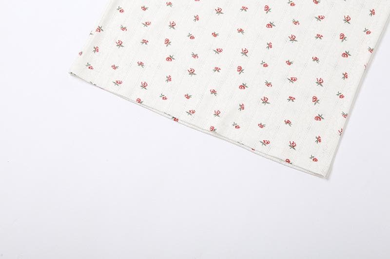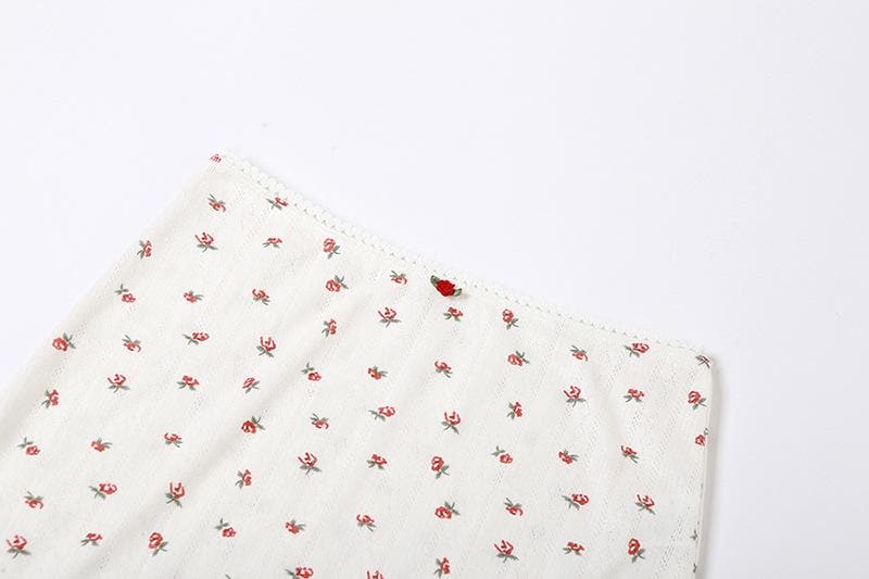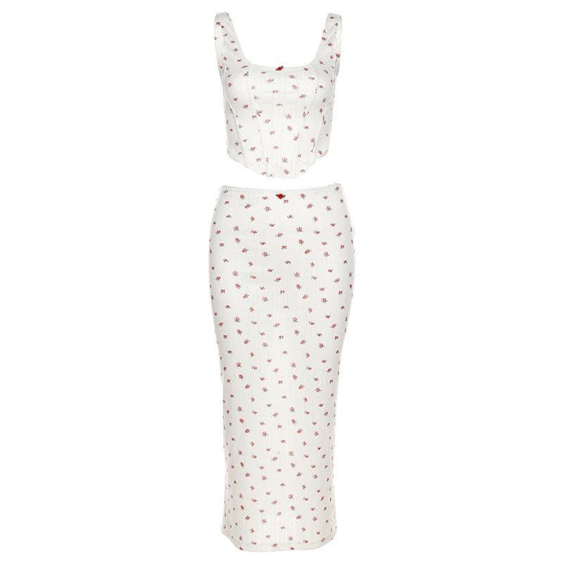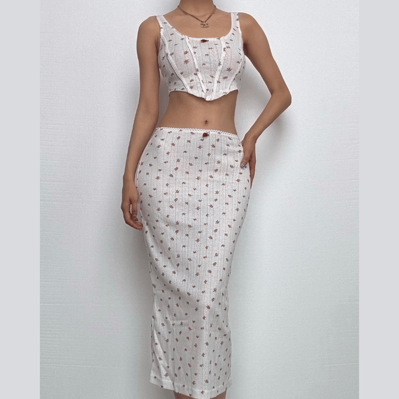 Flower print u neck sleeveless low rise lace hem midi skirt set
