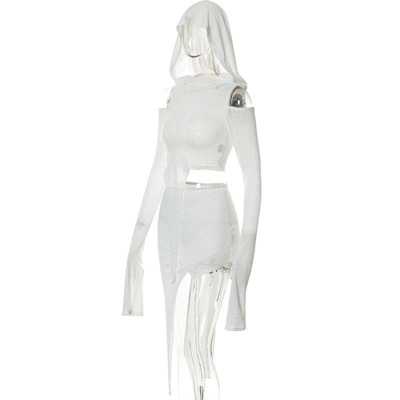 Hoodie irregular solid off shoulder long sleeve mini skirt set