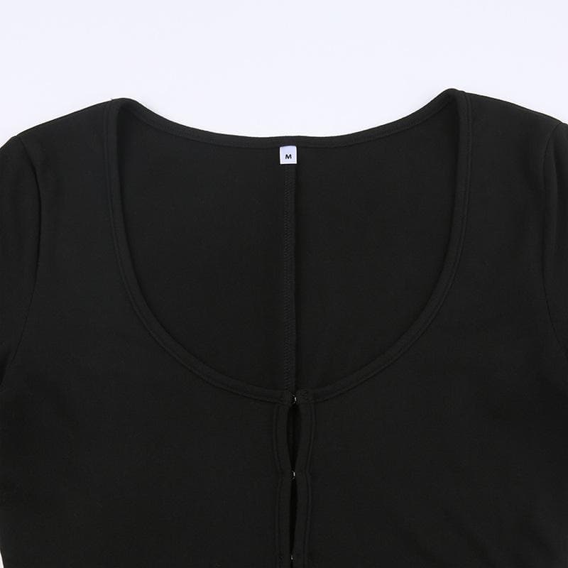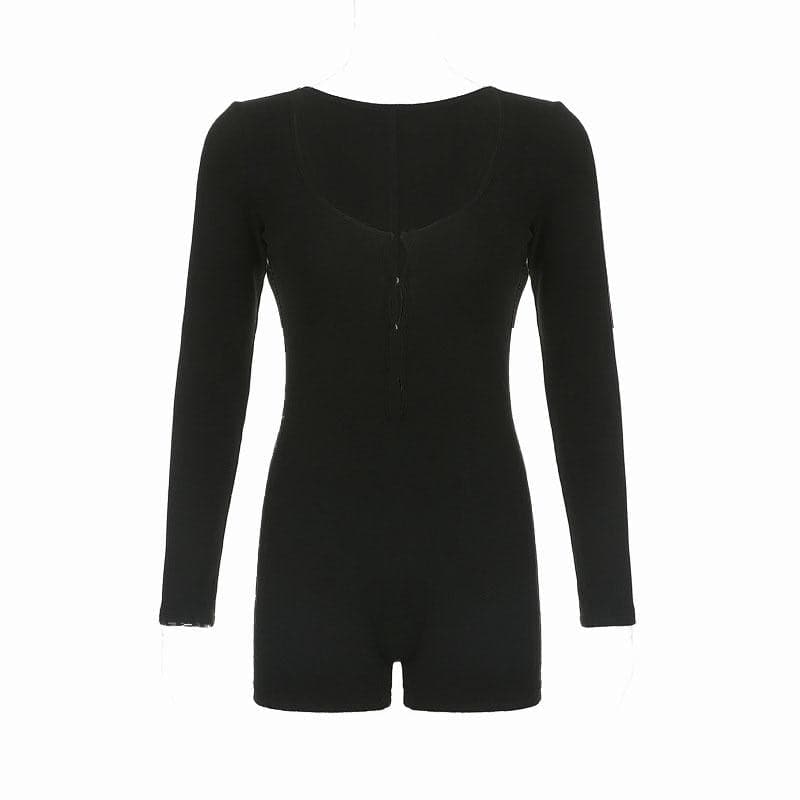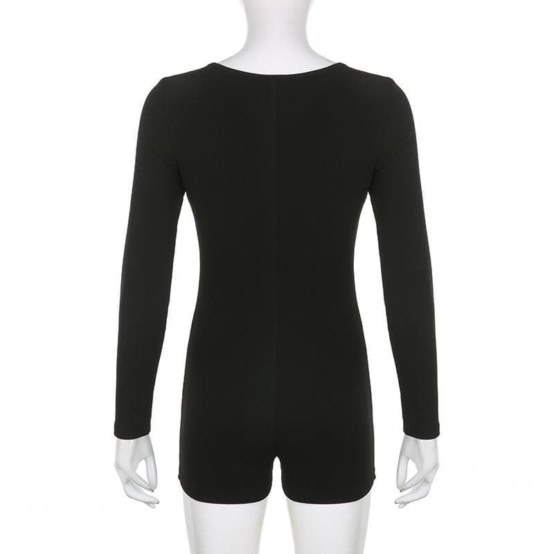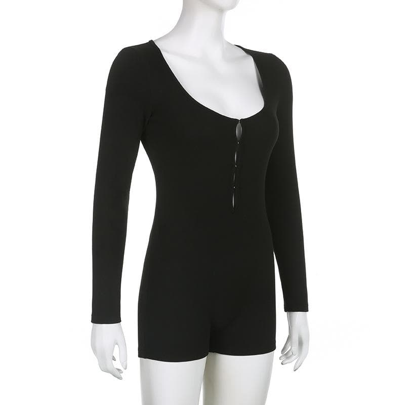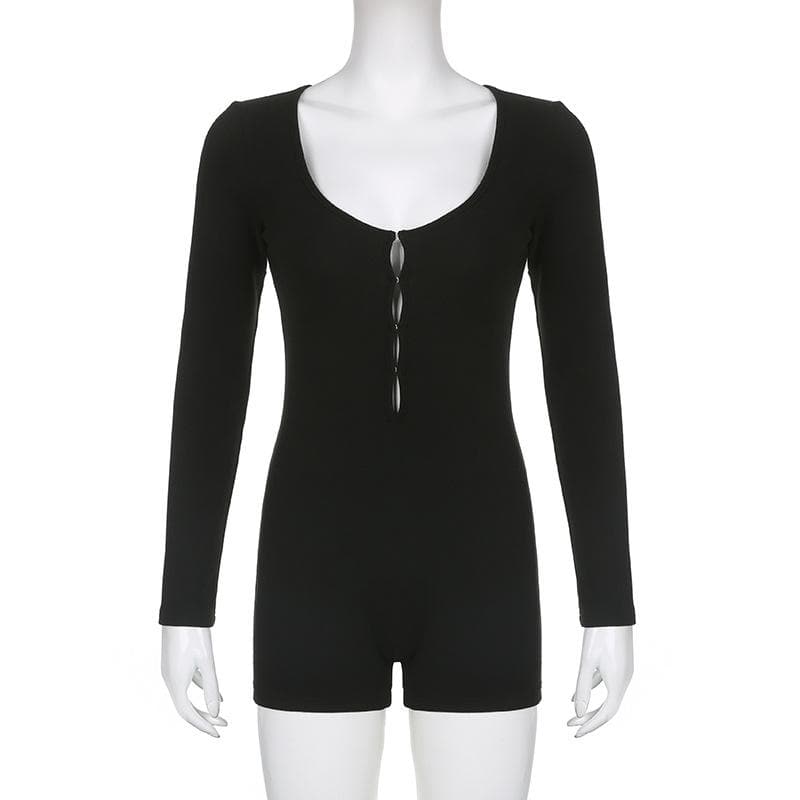 Long sleeve solid button u neck hollow out romper