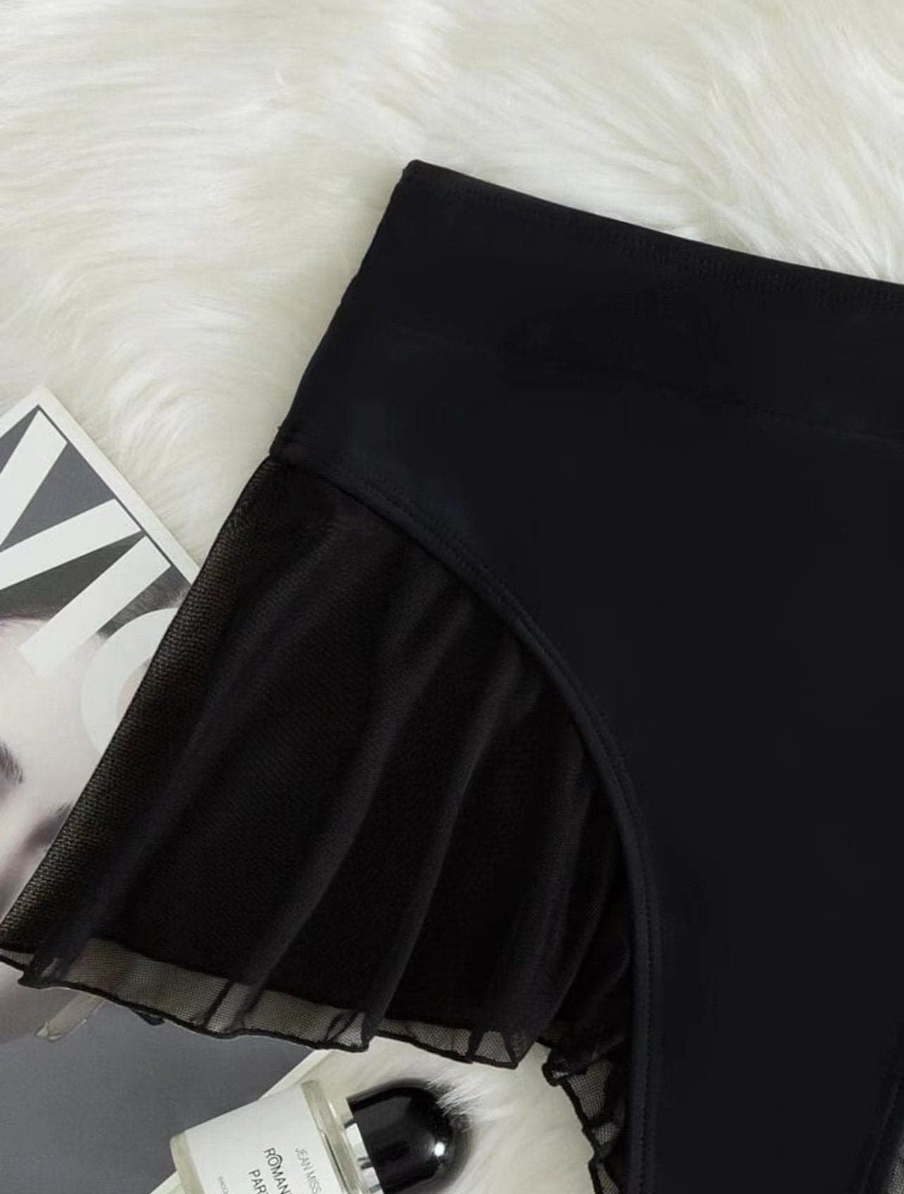 Solid mesh ruffle patchwork pant