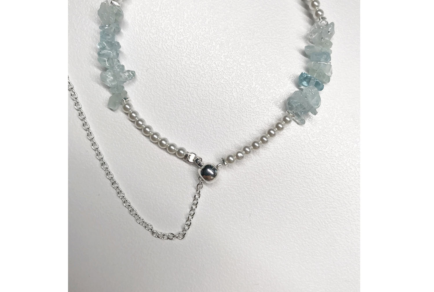 Added color blue crystal + imported shell beads + 14k white gold plated