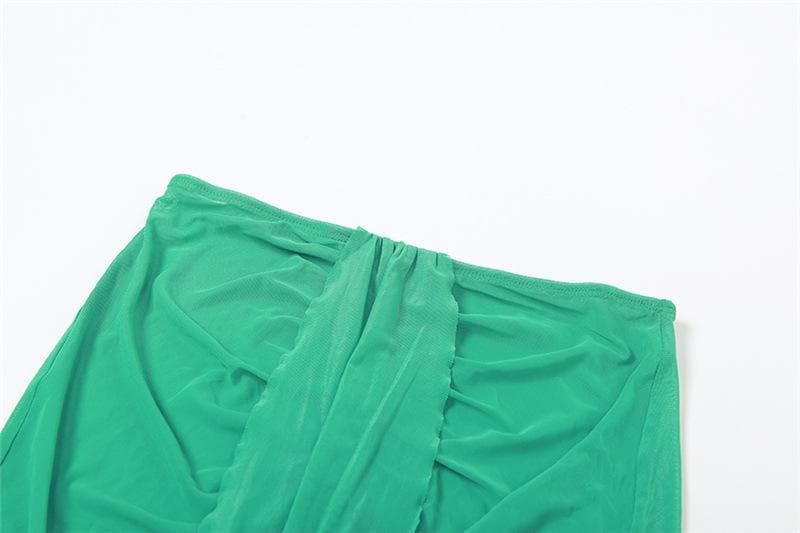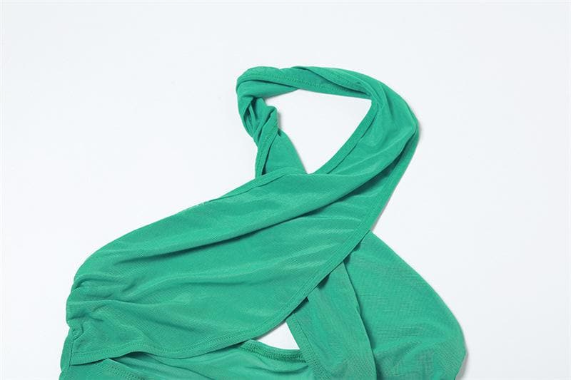 Cross front gloves hollow out halter mesh bodysuit maxi skirt set