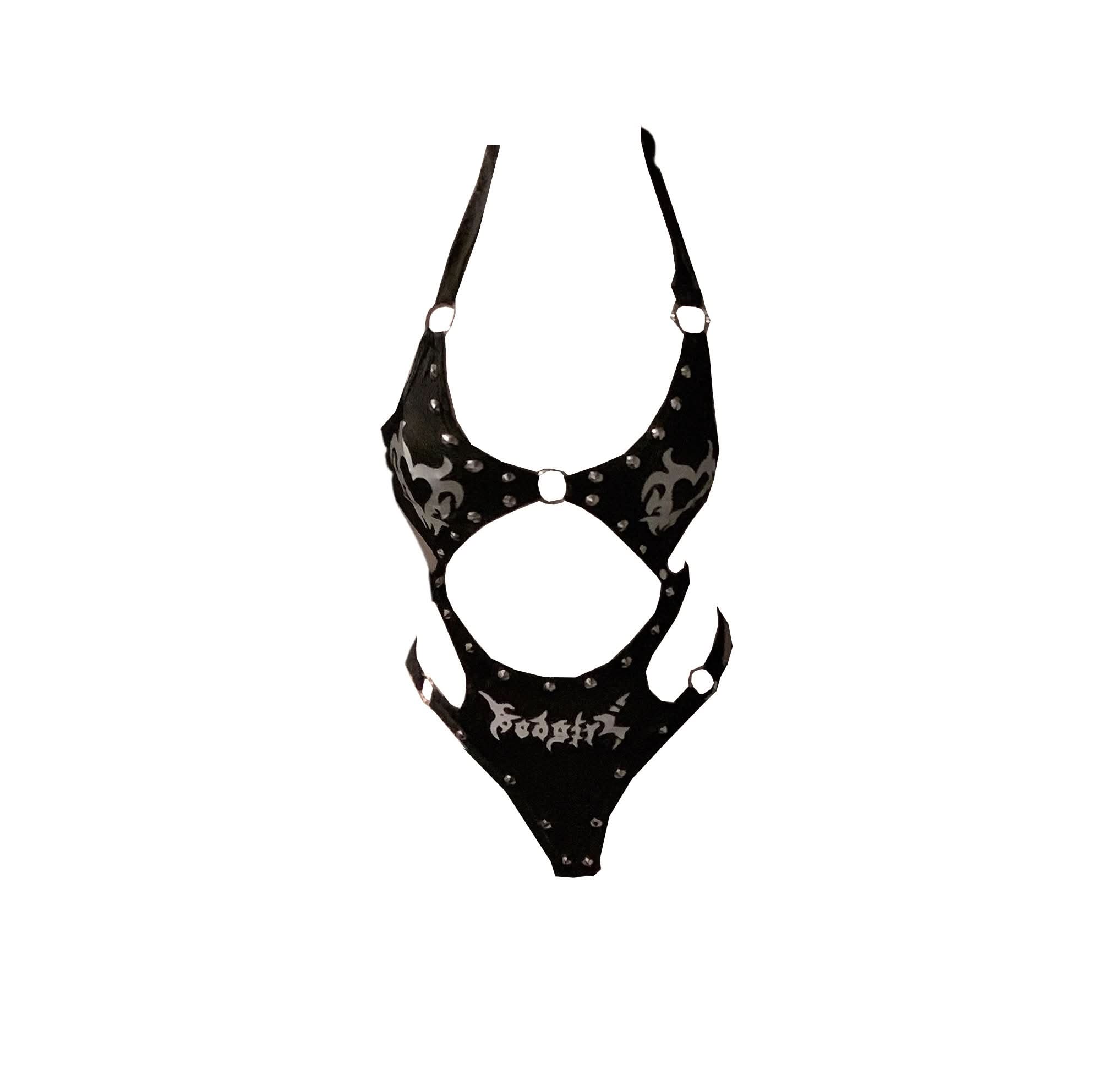 Halter beaded skeleton print o ring mini skirt set