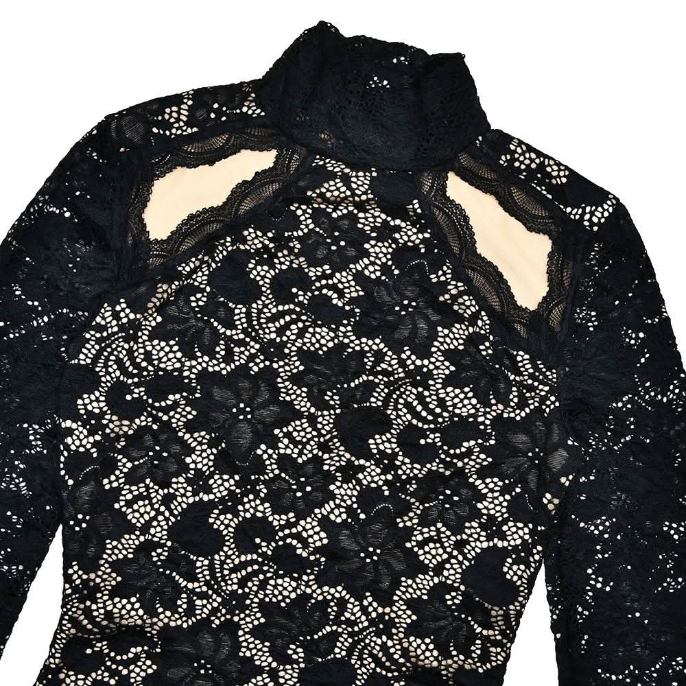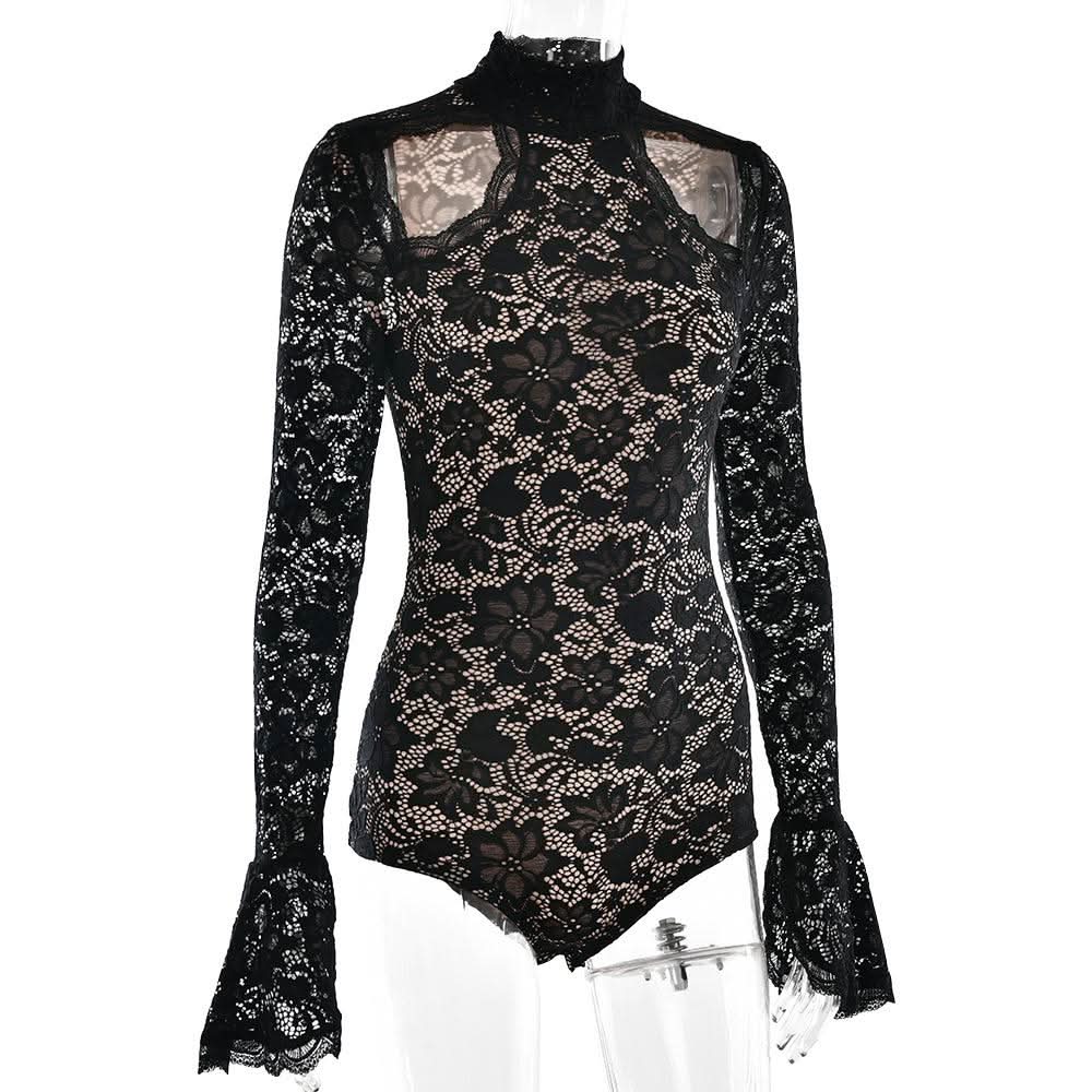 High neck long sleeve hollow out lace bodysuit