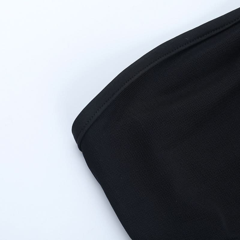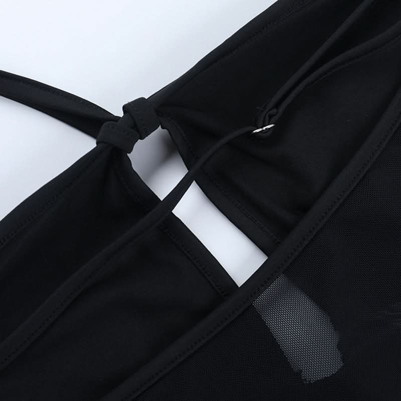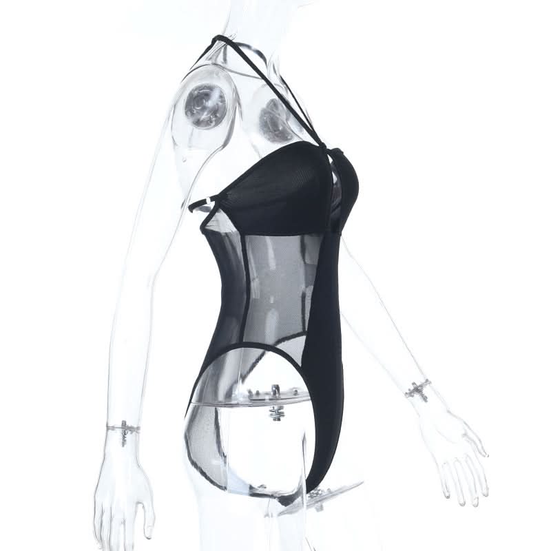 Hollow out mesh patchwork halter bodysuit