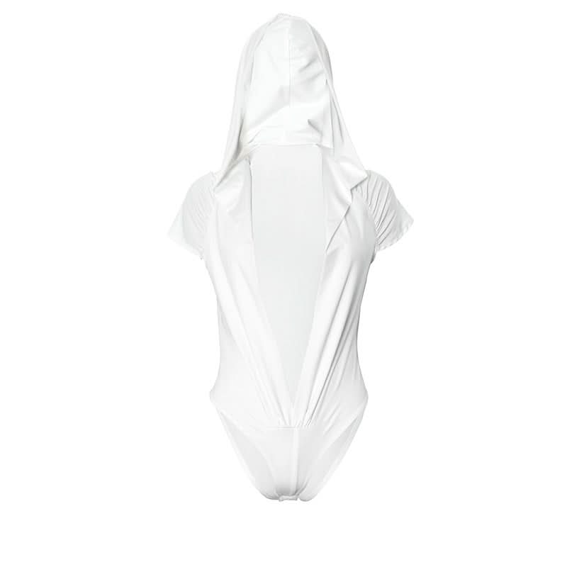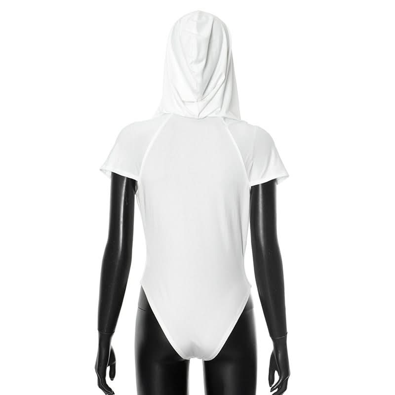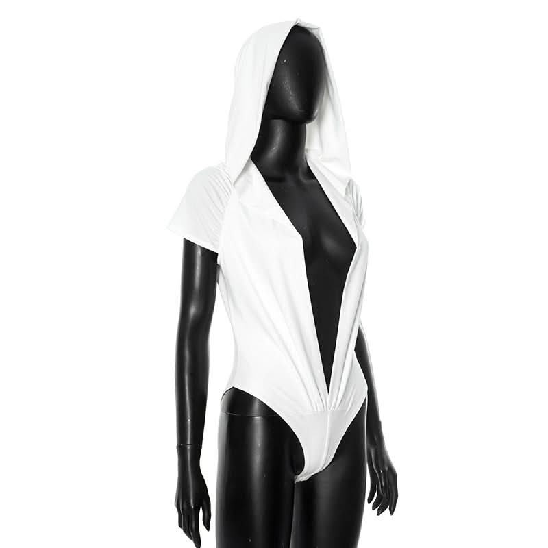 Hoodie short sleeve button deep v neck bodysuit