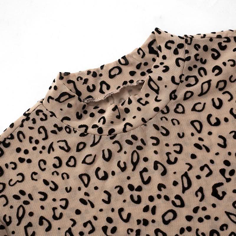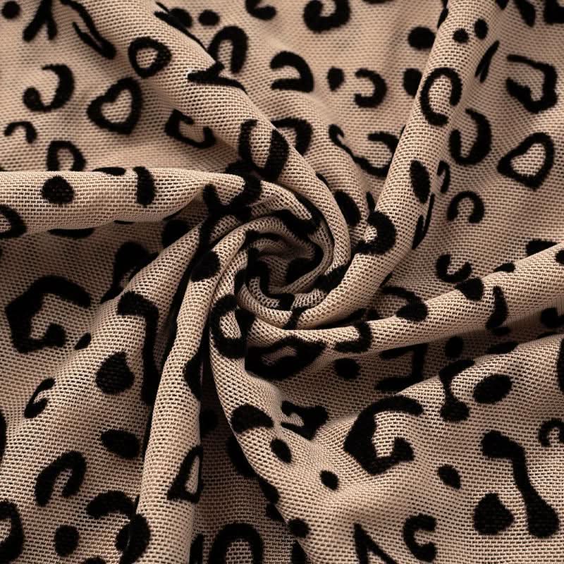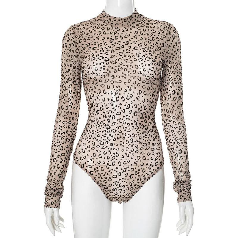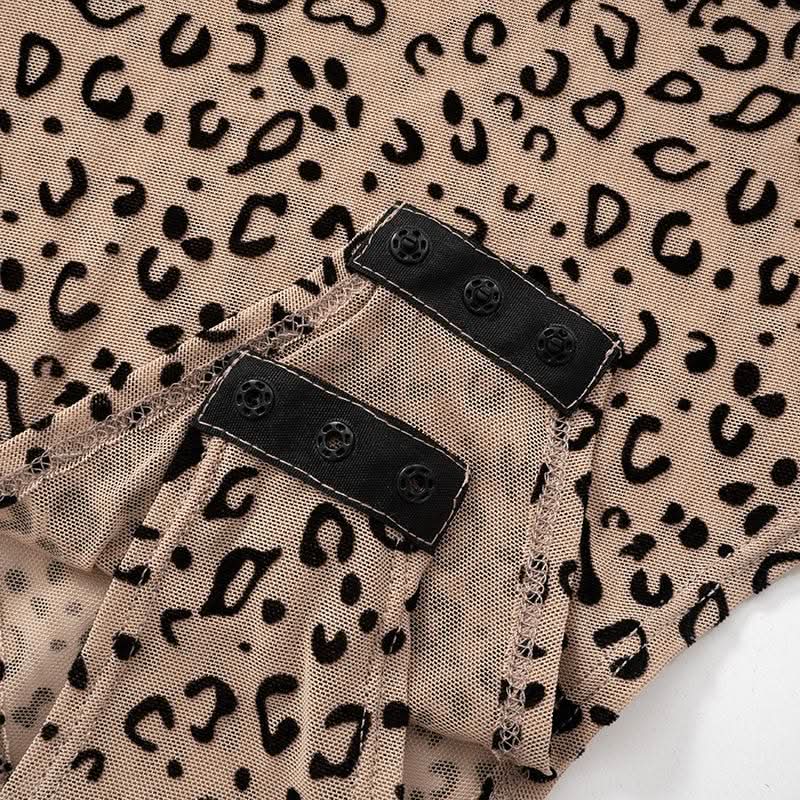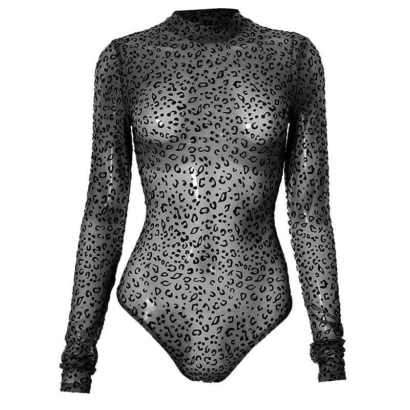 Long sleeve leopard print button sheer mesh bodysuit