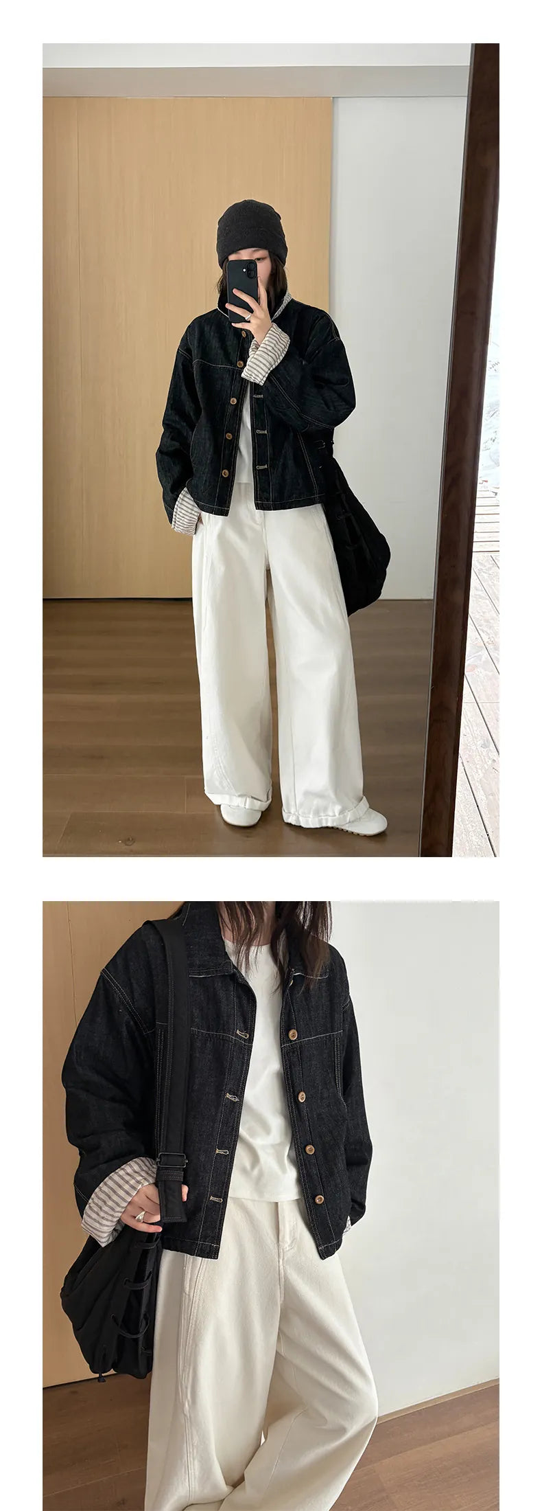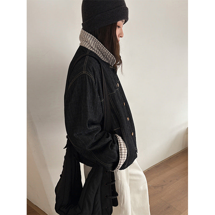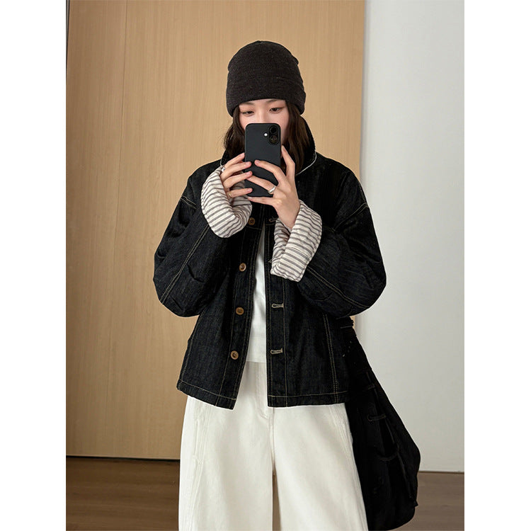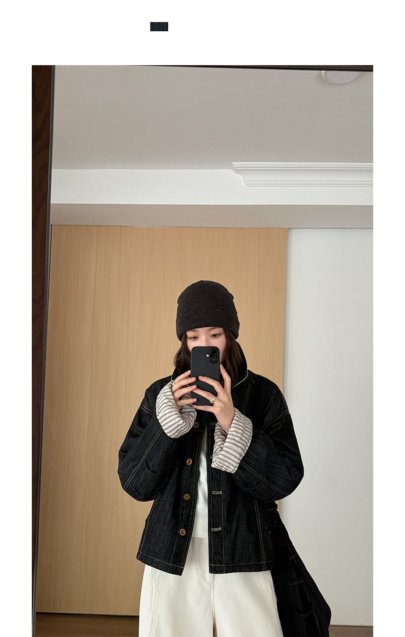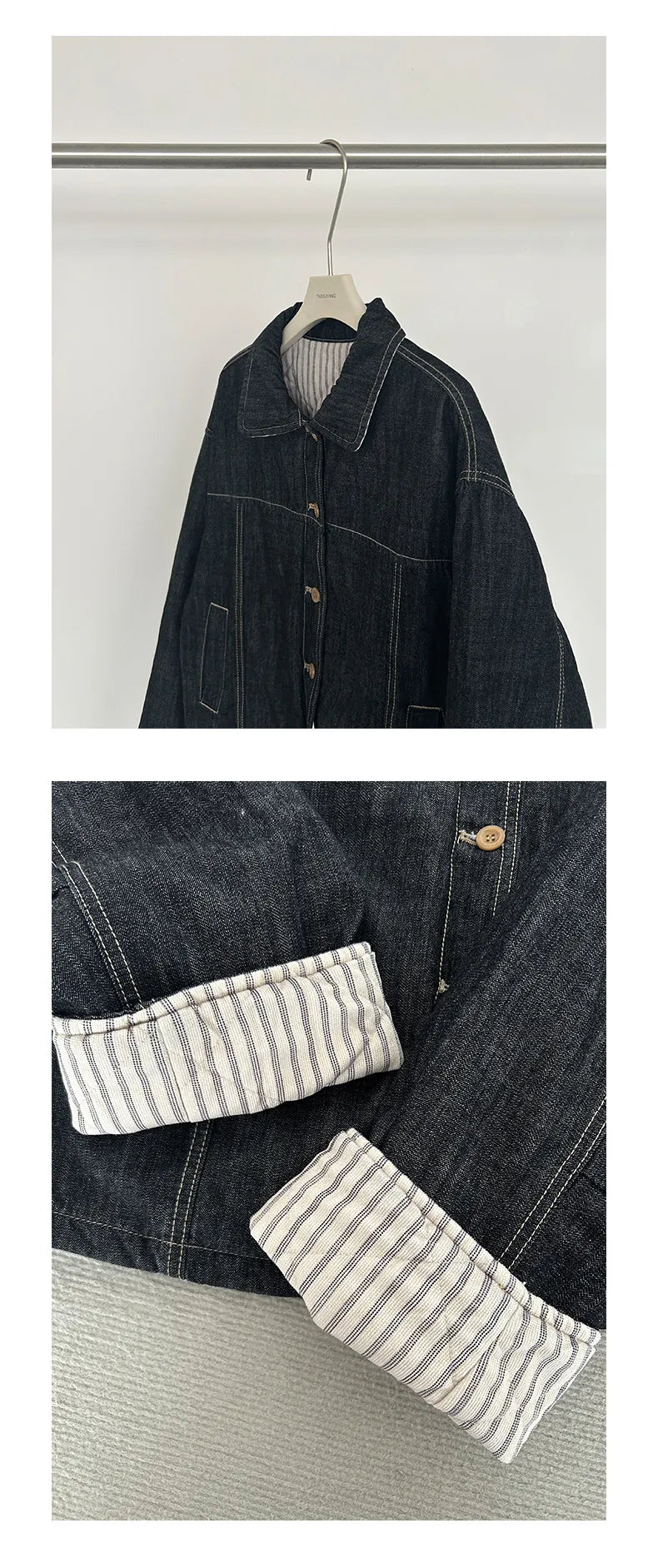 striped denim jacket