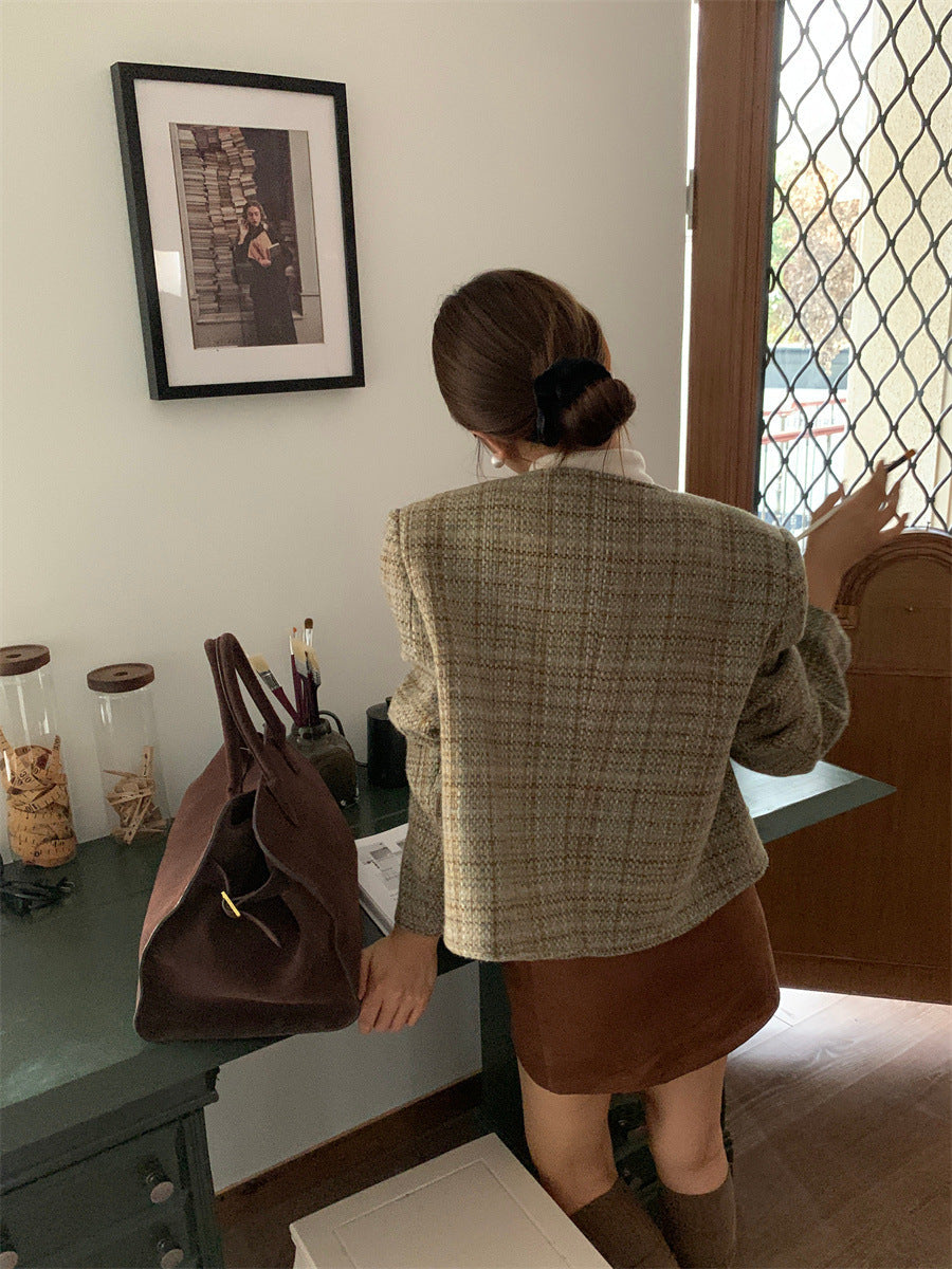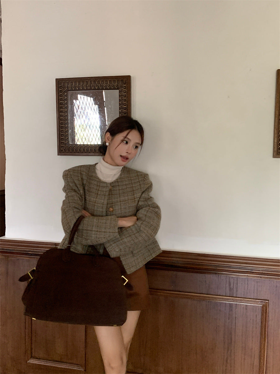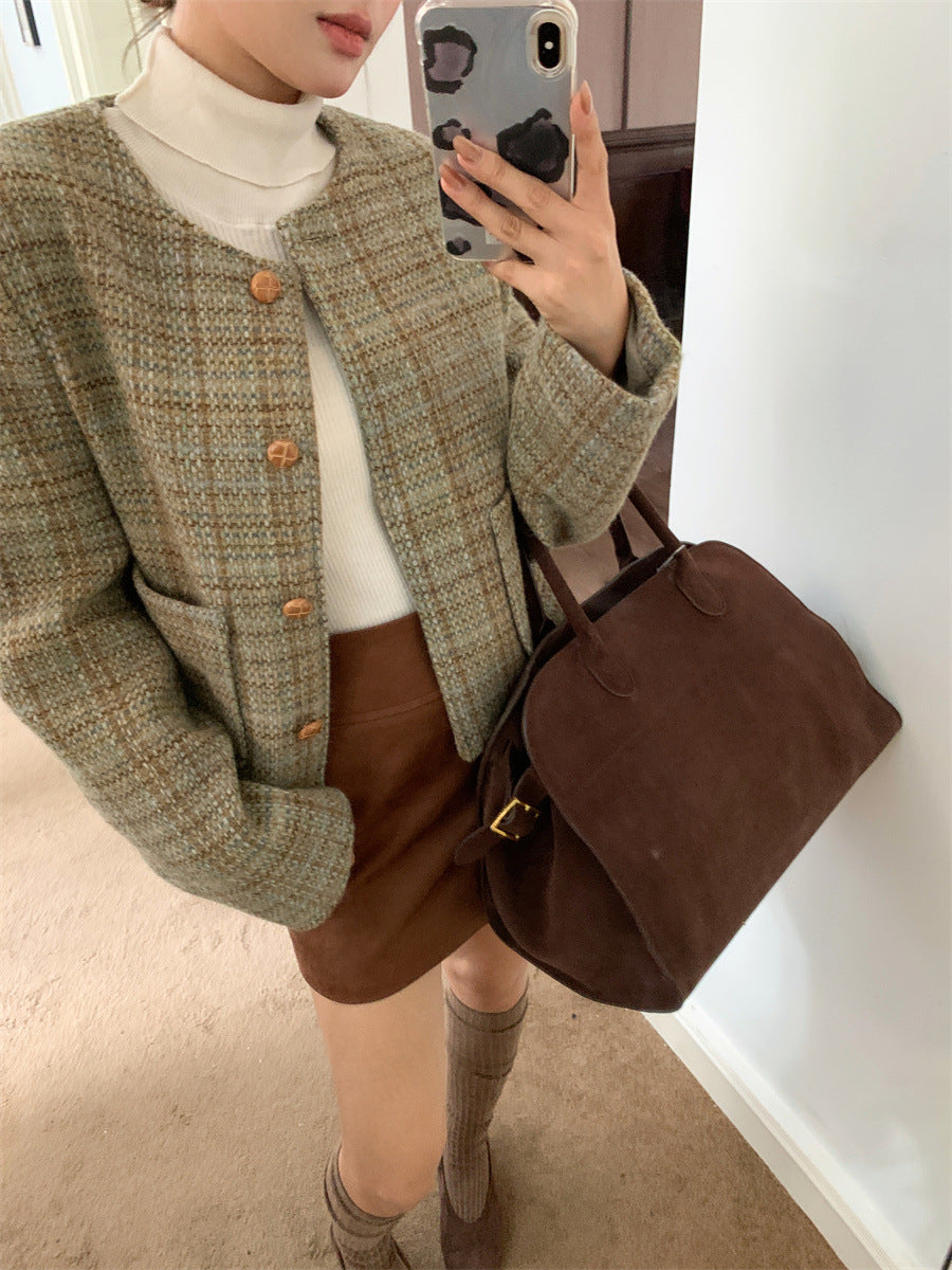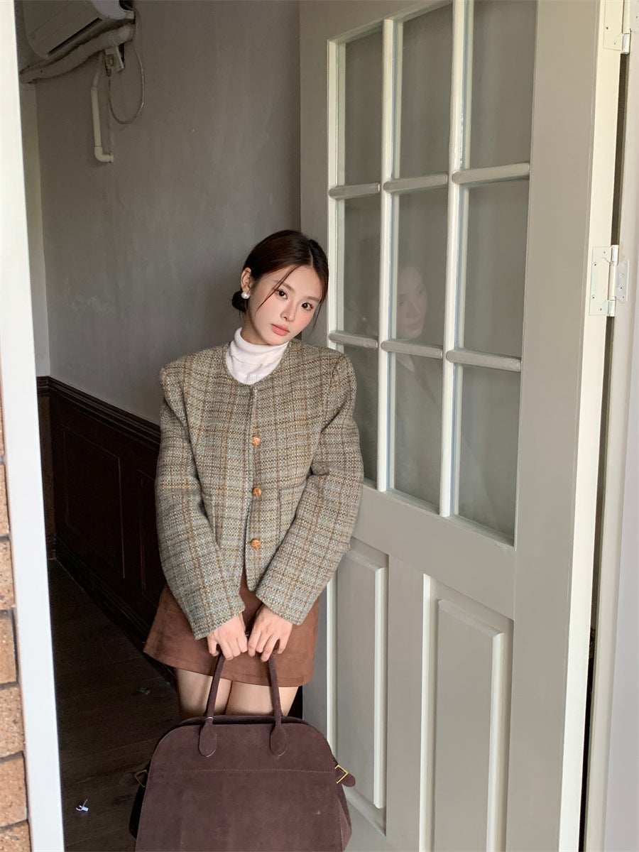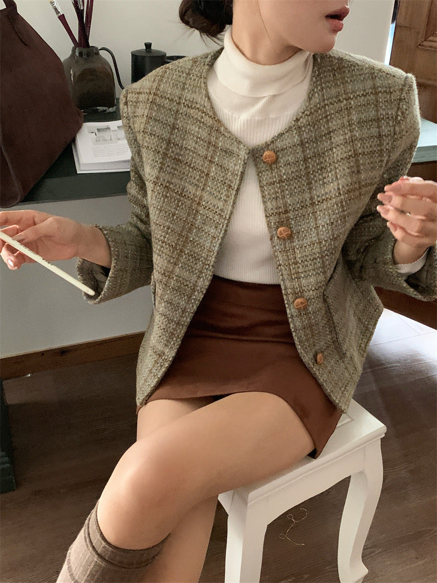 Retro Plaid slim-fit Woolen Jacket