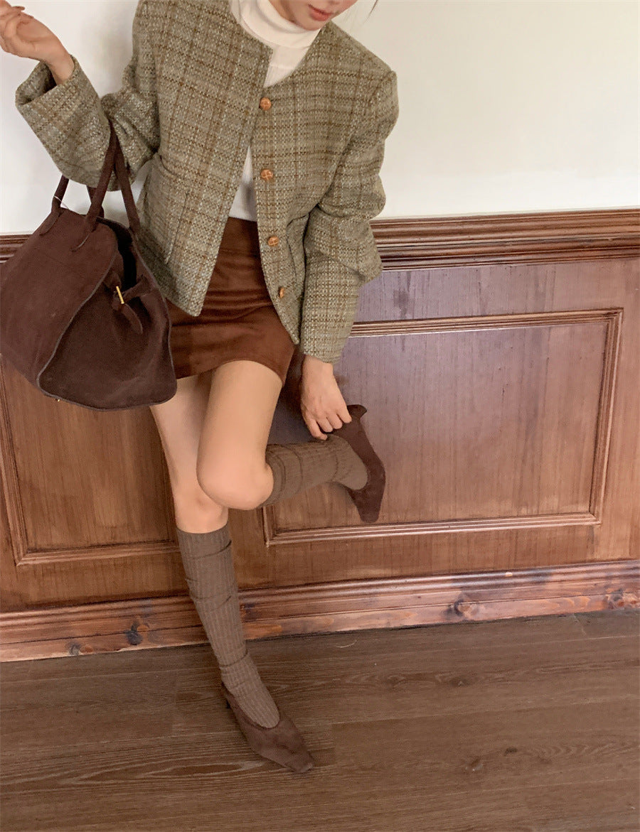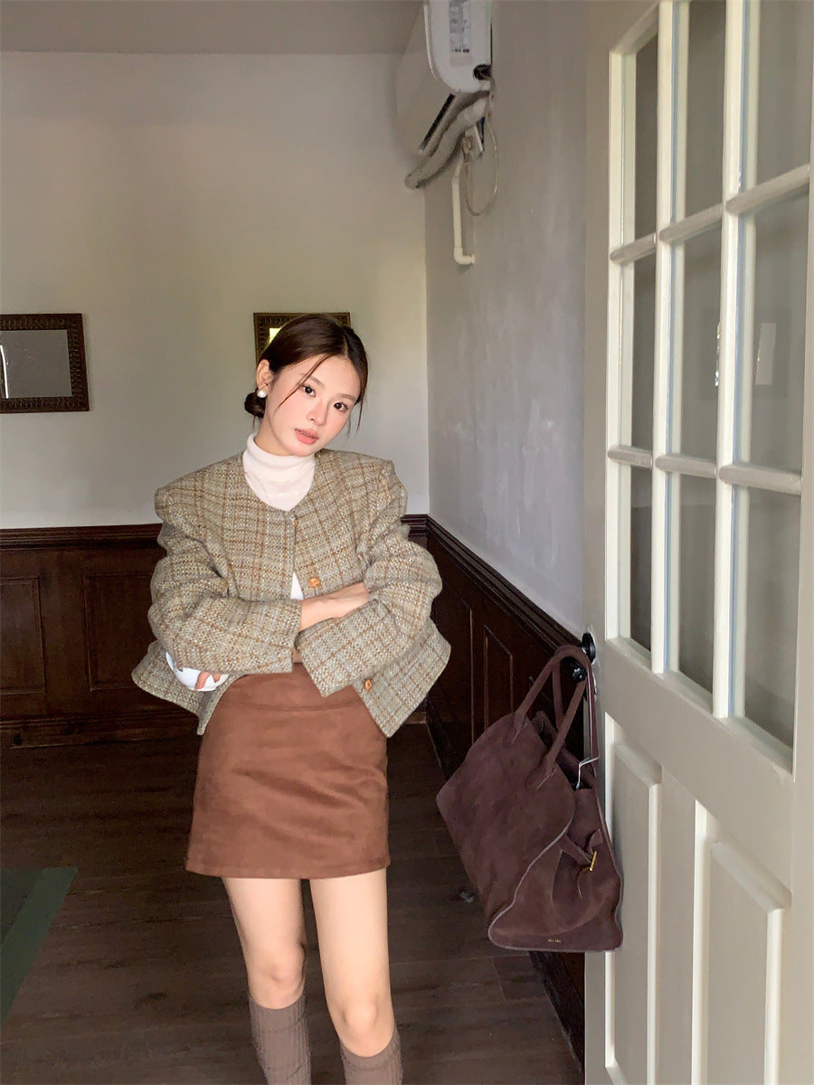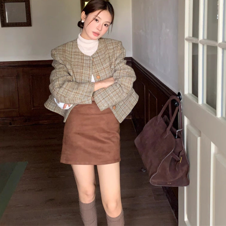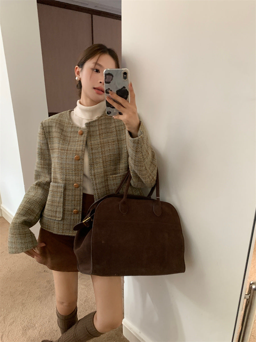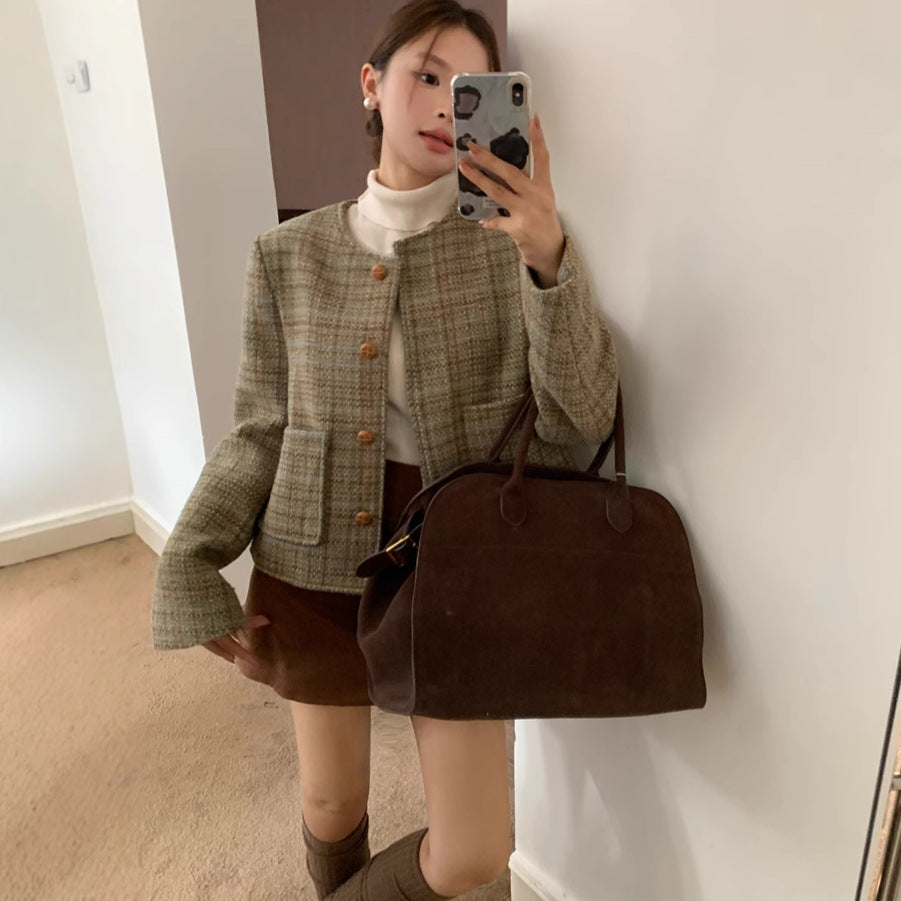 Retro Plaid slim-fit Woolen Jacket