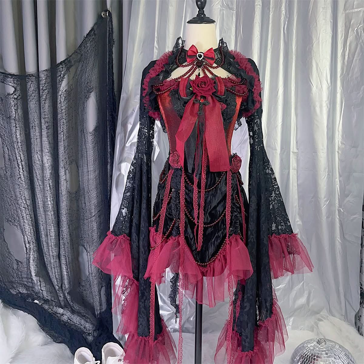 Bowknot ruffle mesh beaded shrug 2 piece cami mini dress