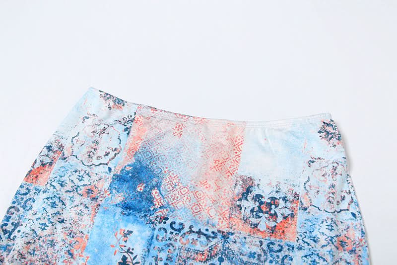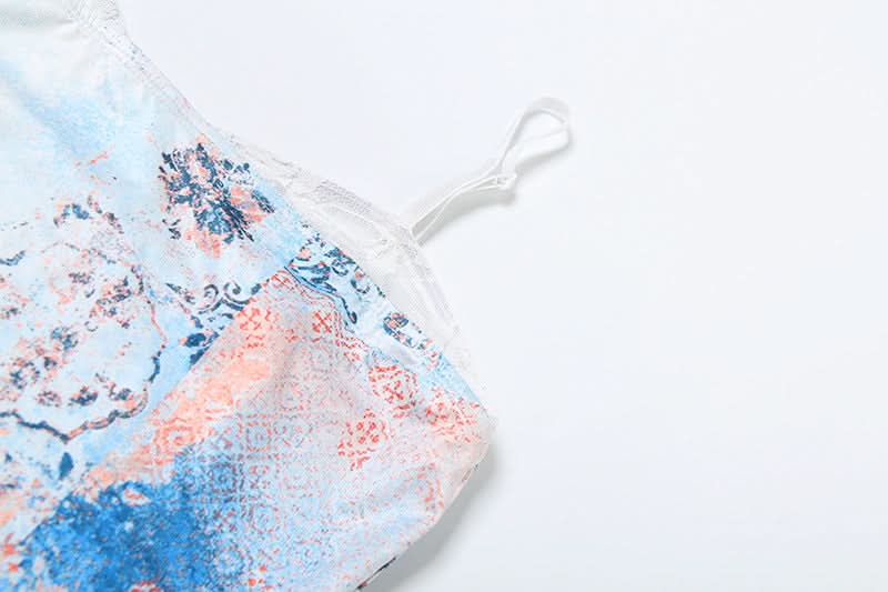 Contrast lace patchwork slit cami maxi dress