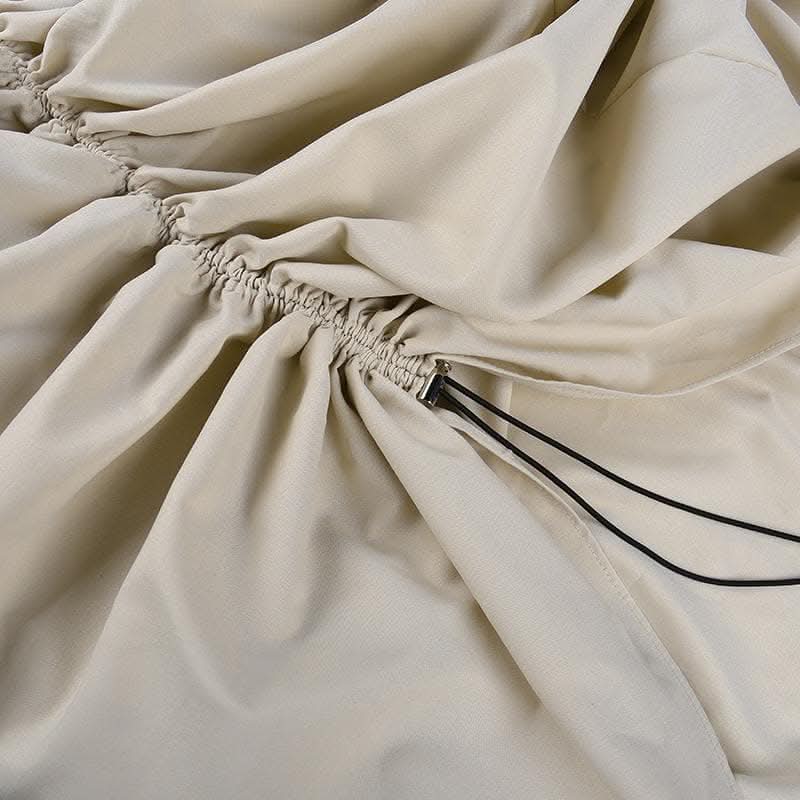 Drawstring sleeveless zip-up solid ruched mini dress-final-sale