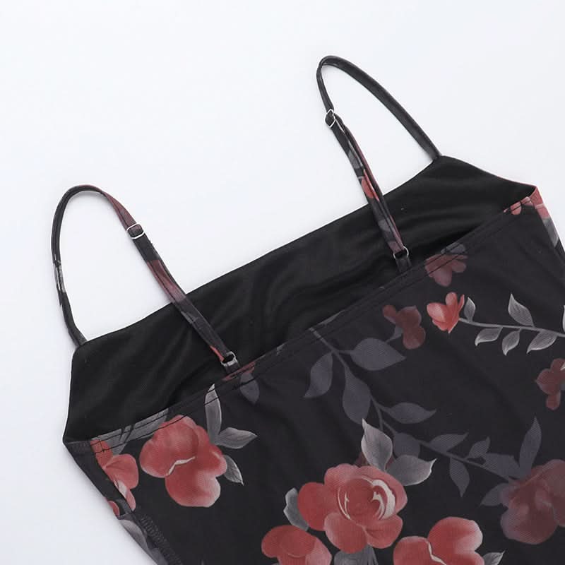 Flower print mesh cami maxi dress
