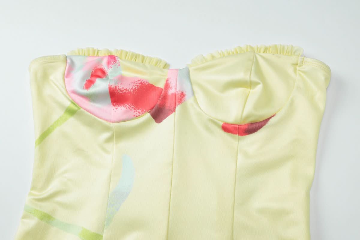 Flower print ruffle tube mini dress