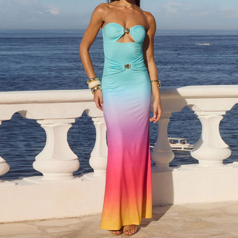 Gradient hollow out ruched tube cut out maxi dress
