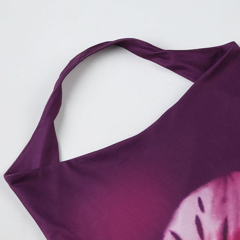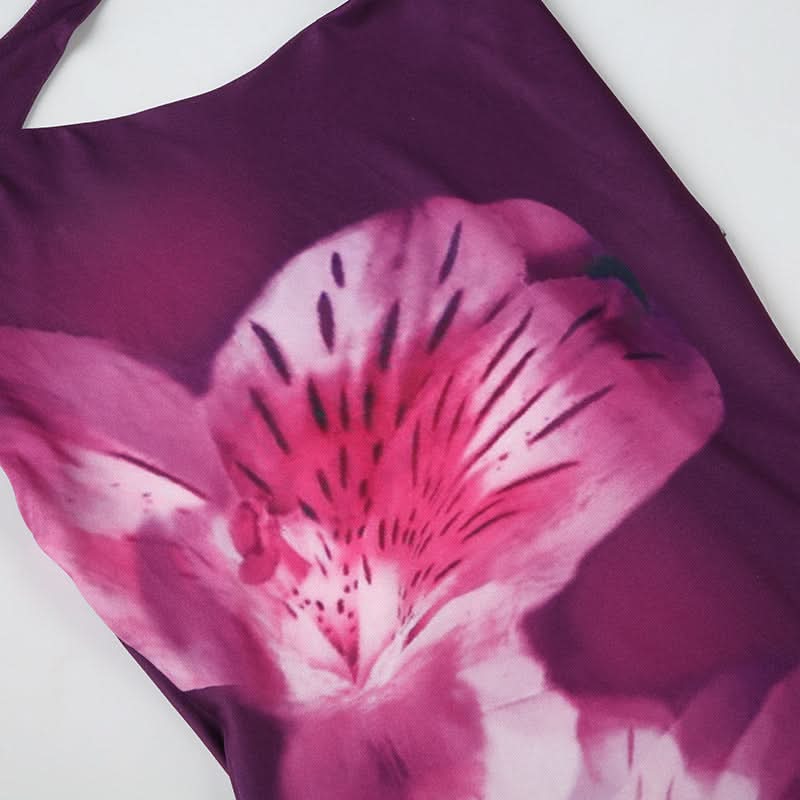 Halter flower print cowl neck backless mini dress
