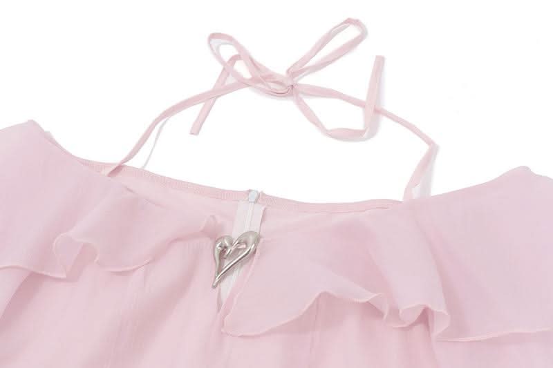 Halter off shoulder long sleeve ruffle metal applique mini dress