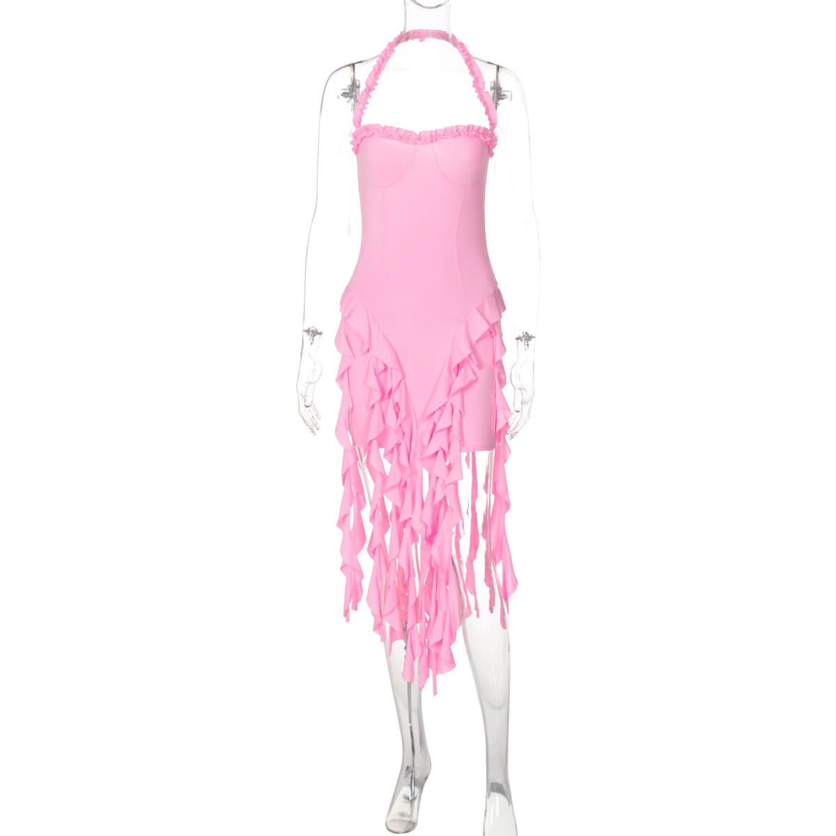 Halter ruffle backless midi dress