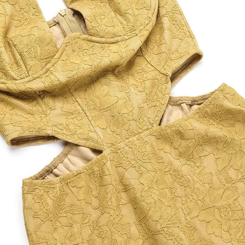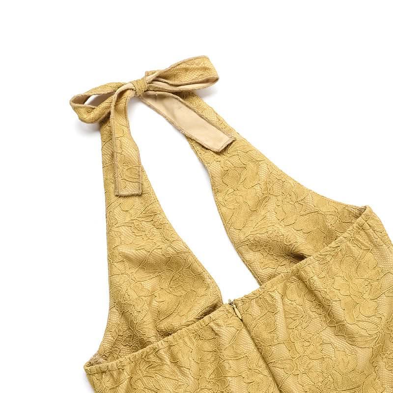 Halter self tie hollow out slit zip-up lace cut out maxi dress