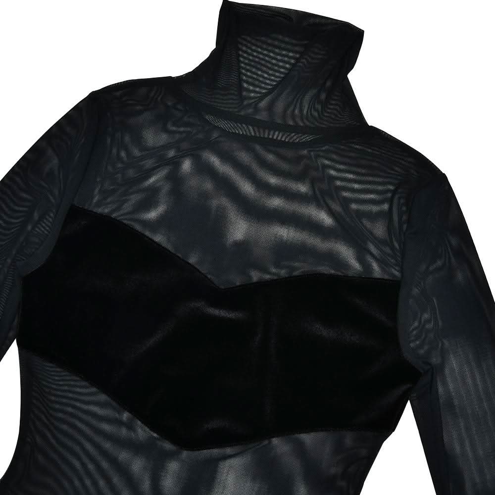 High neck long sleeve mesh patchwork velvet maxi dress