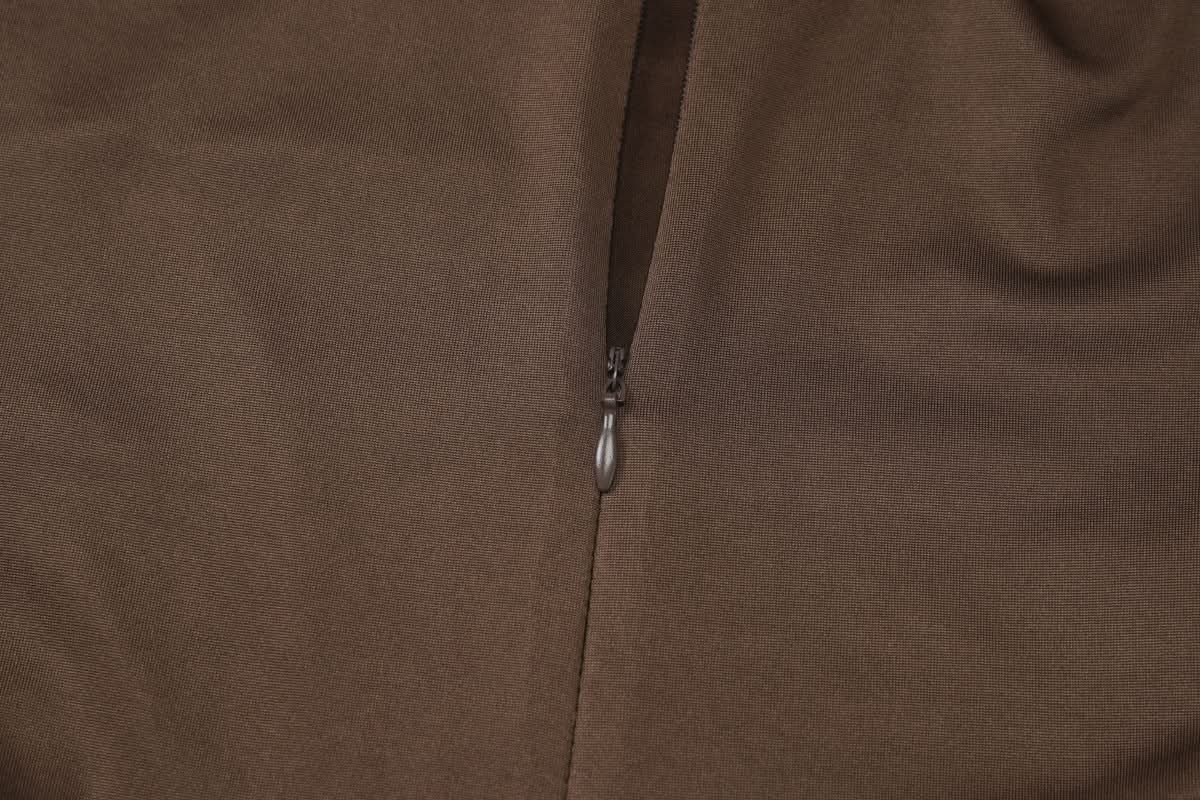 Irregular ruched zip-up crewneck slit midi dress