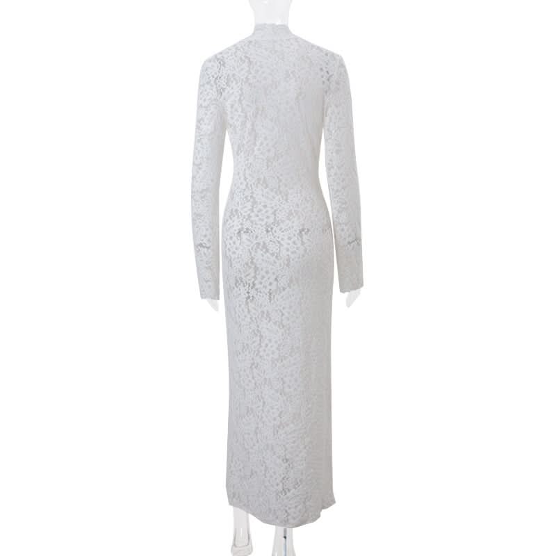 Lace long sleeve slit lace up maxi dress