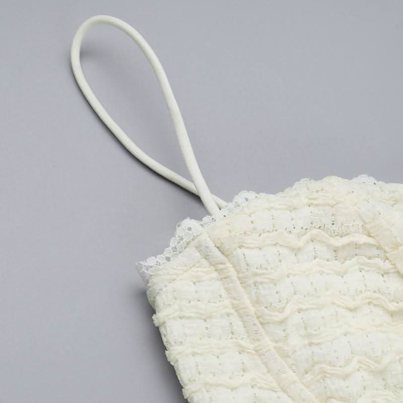 Lace up slit textured spaghetti strap lace hem maxi dress