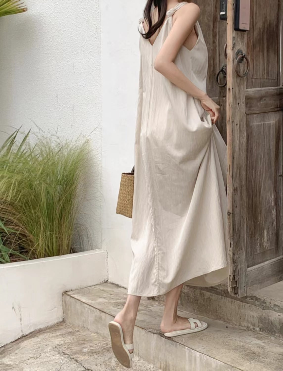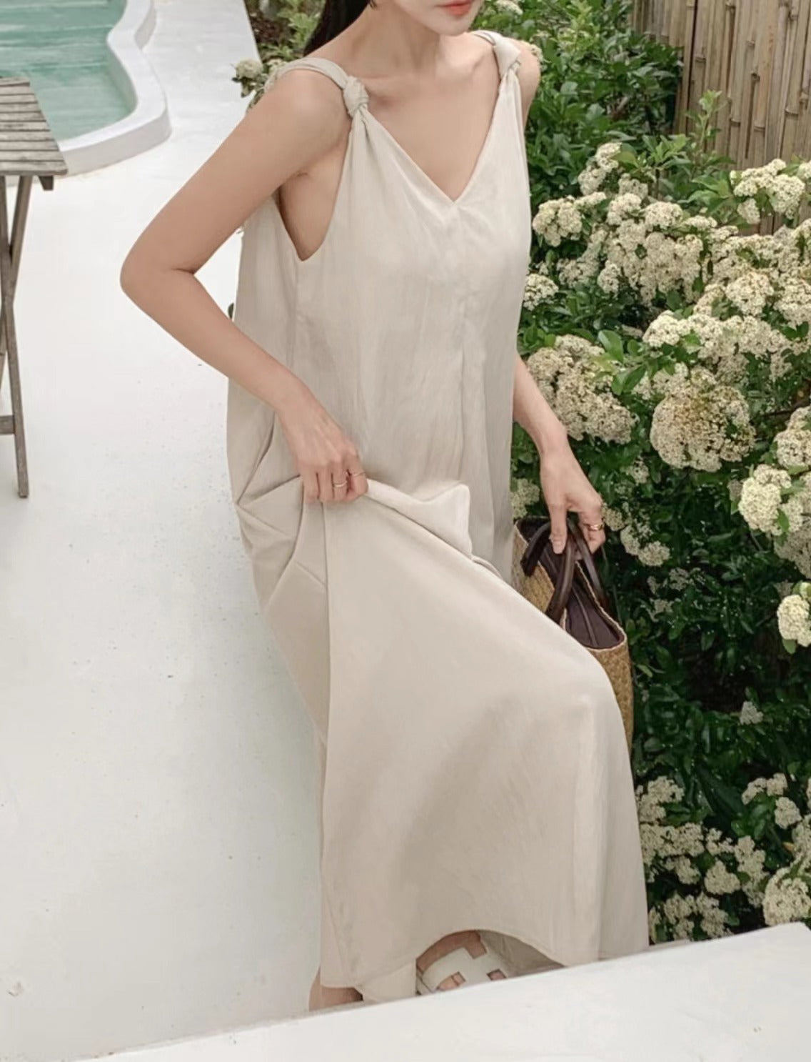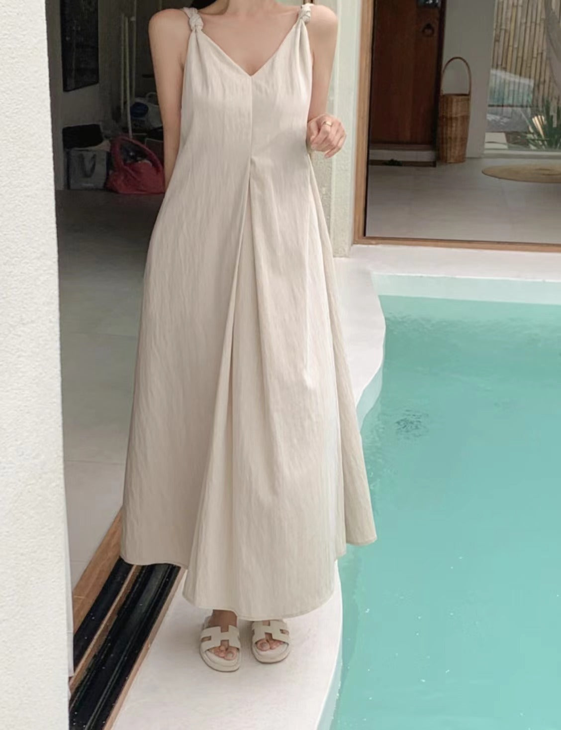 V-neck suspender dress