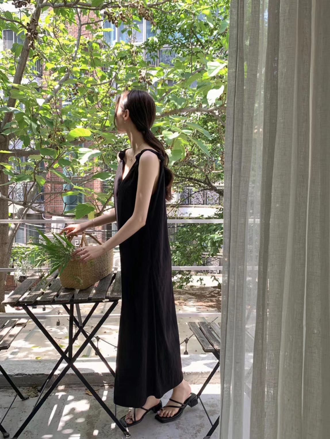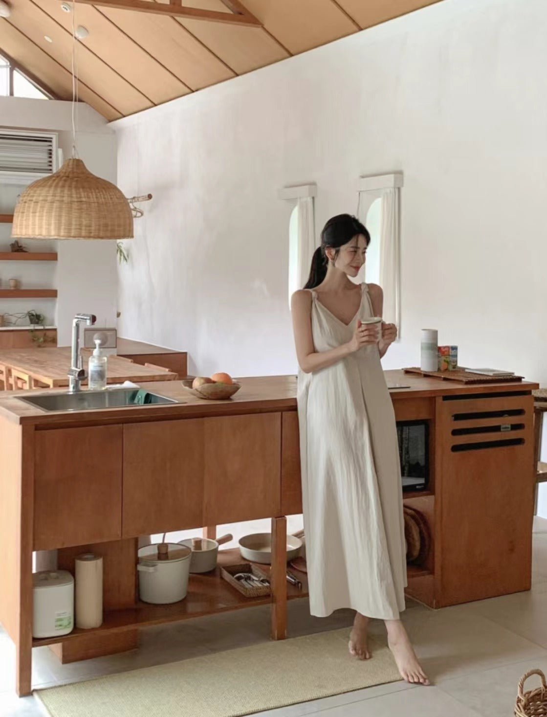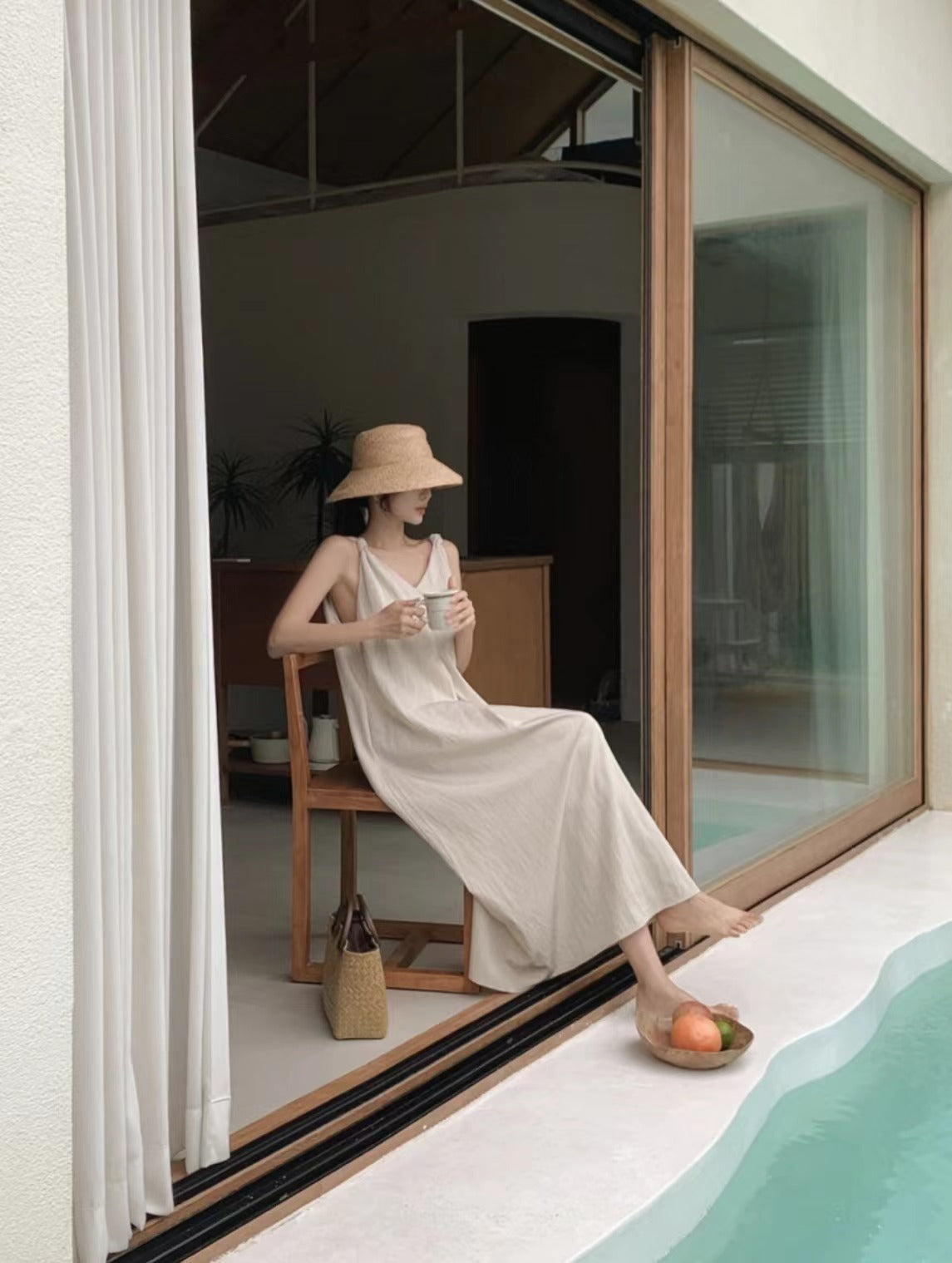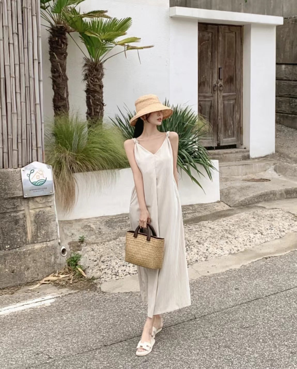 V-neck suspender dress