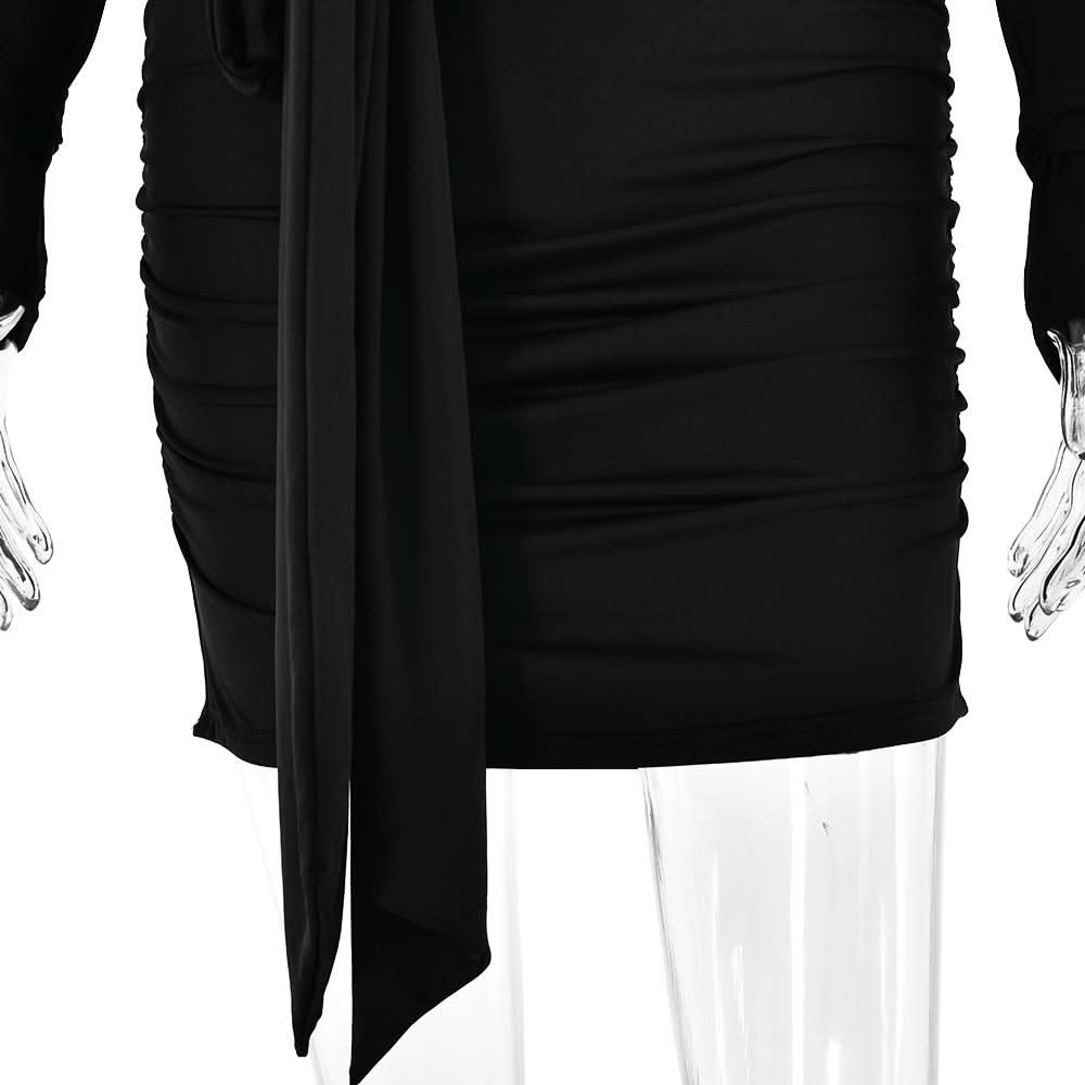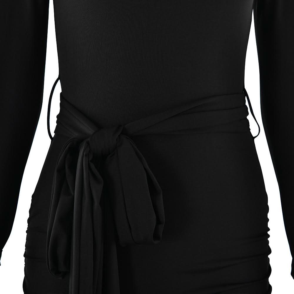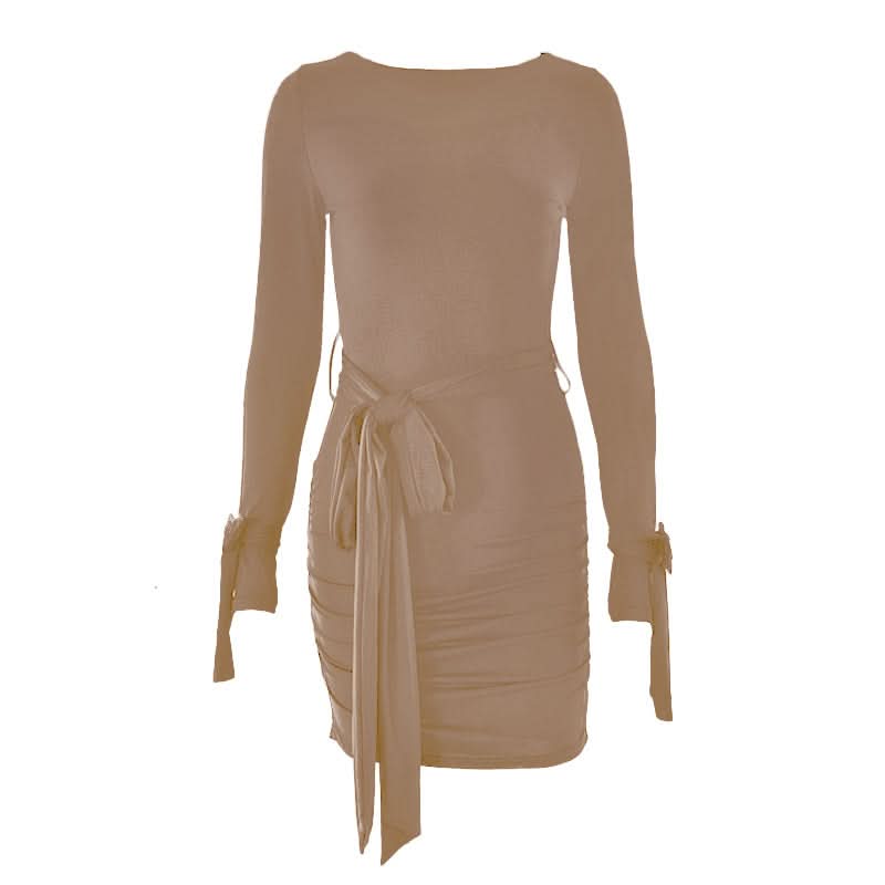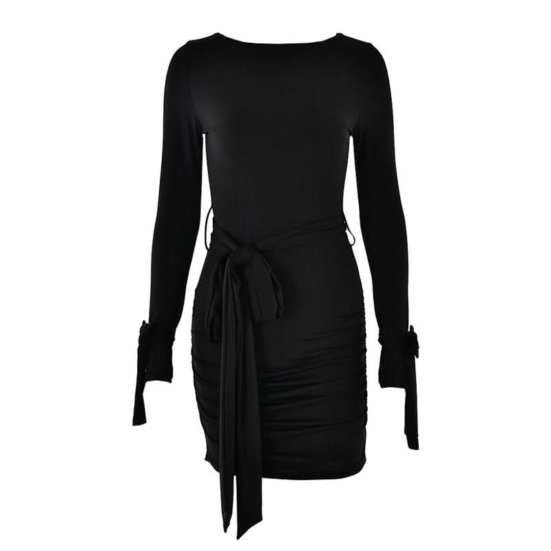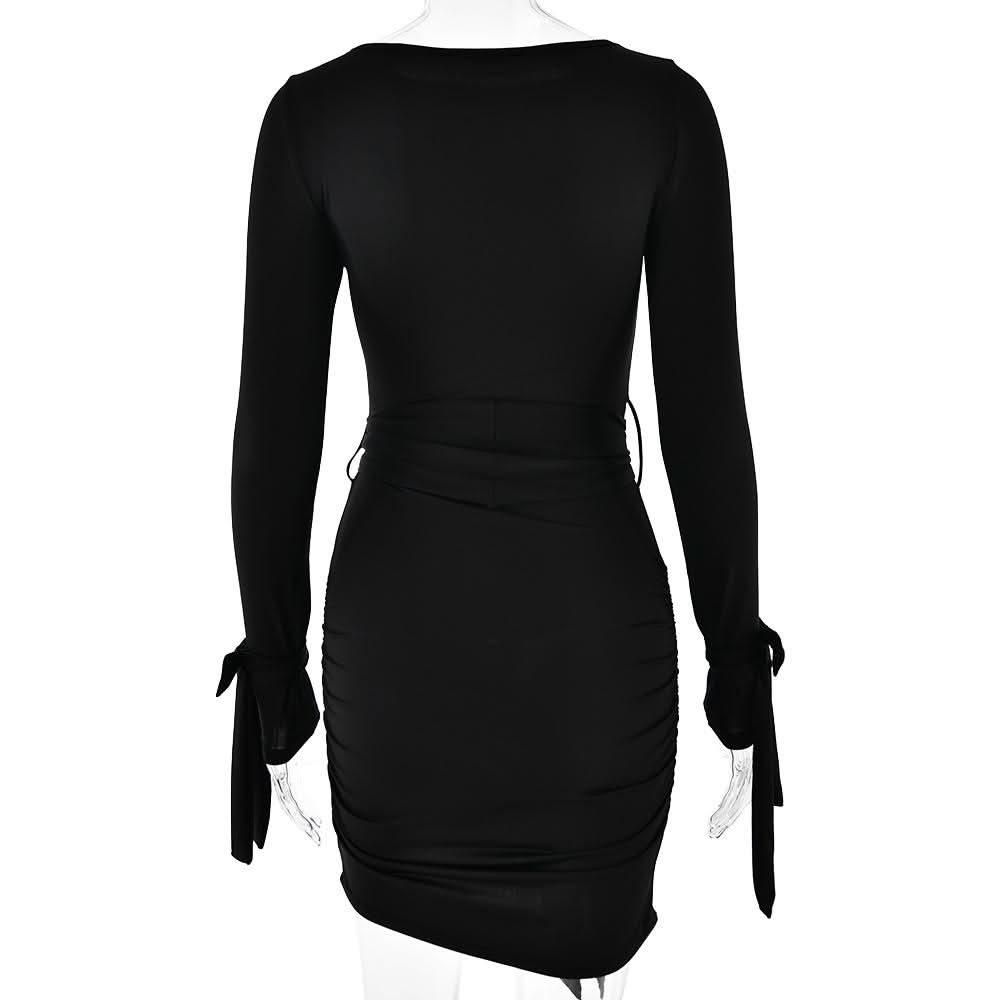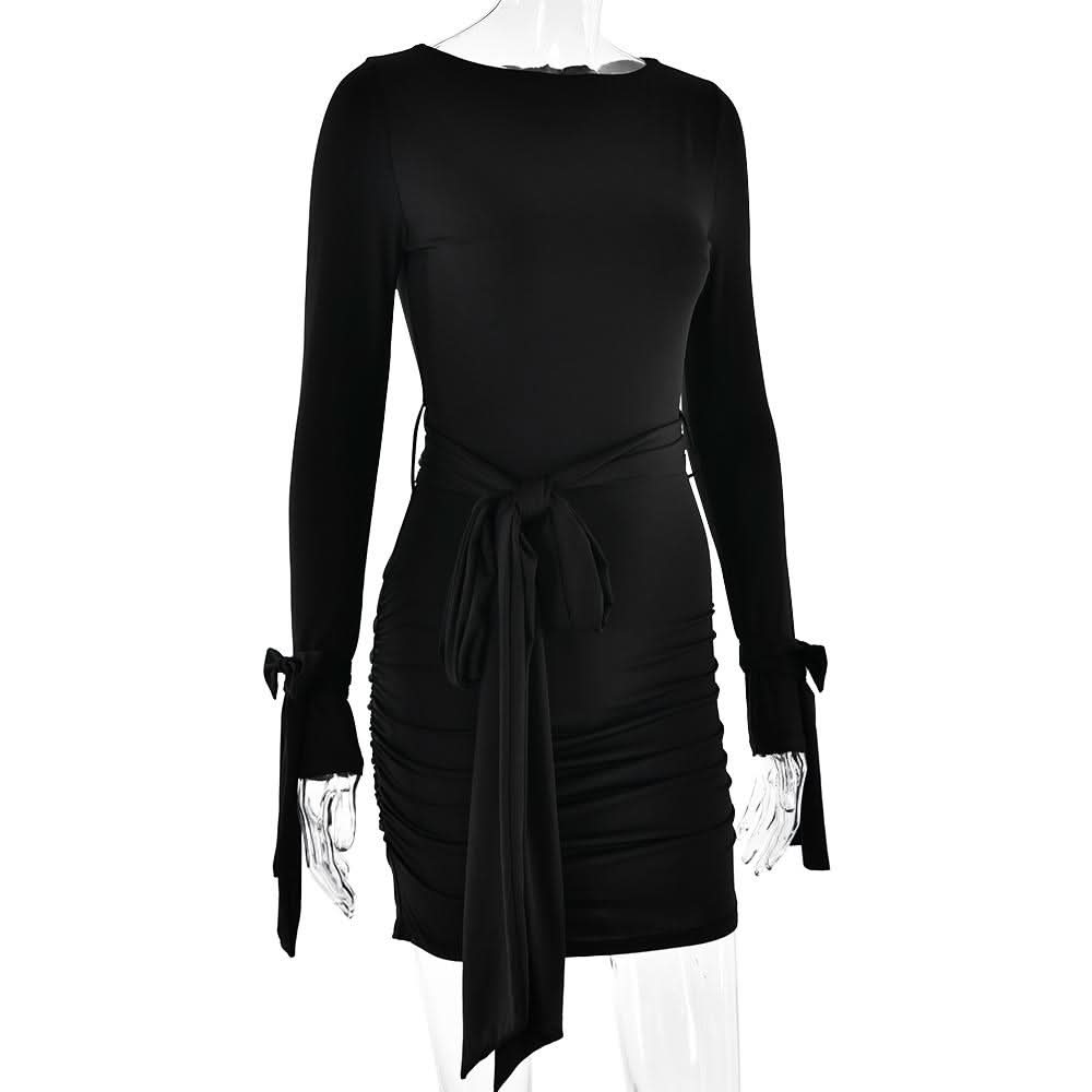 Long sleeve bowknot ruched knotted mini dress